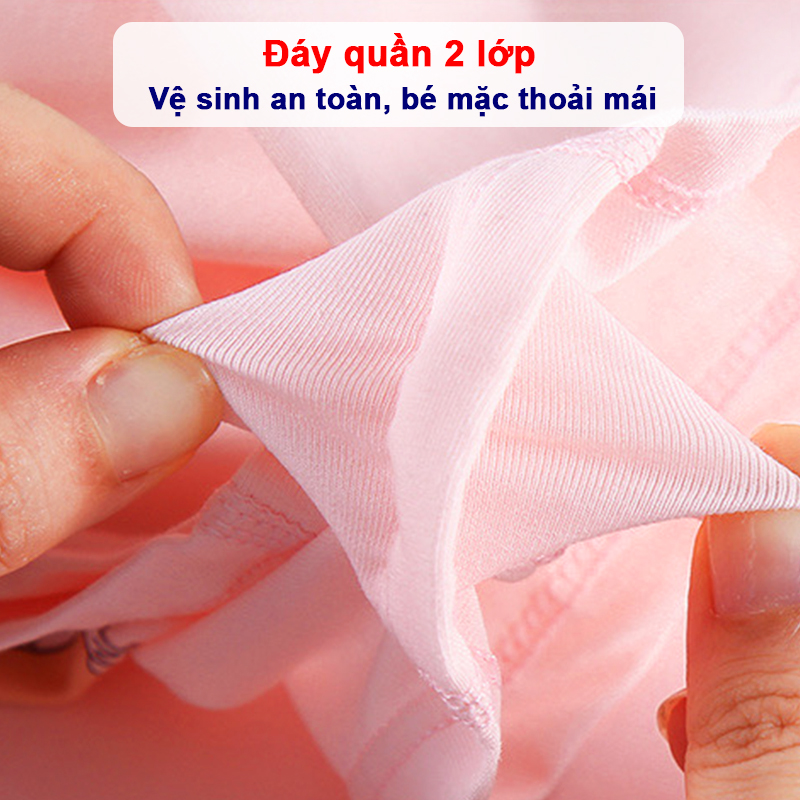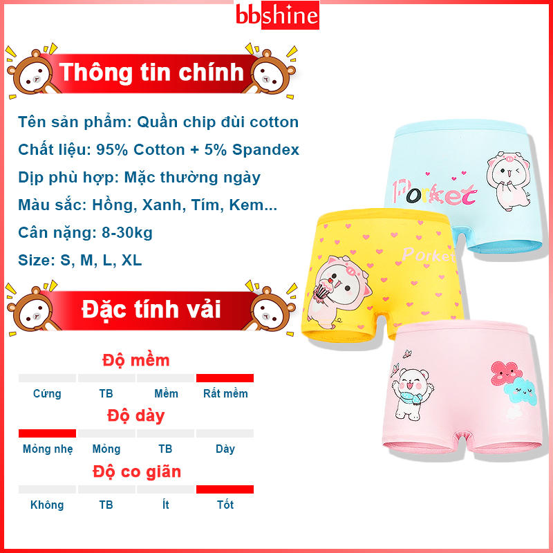 - Quần chip bé gái làm từ vải cotton, không gây kích ứng với da bé, bên cạnh đó còn hút ẩm tuyệt đối, mang đến cảm giác thoải mái khi bé mặc