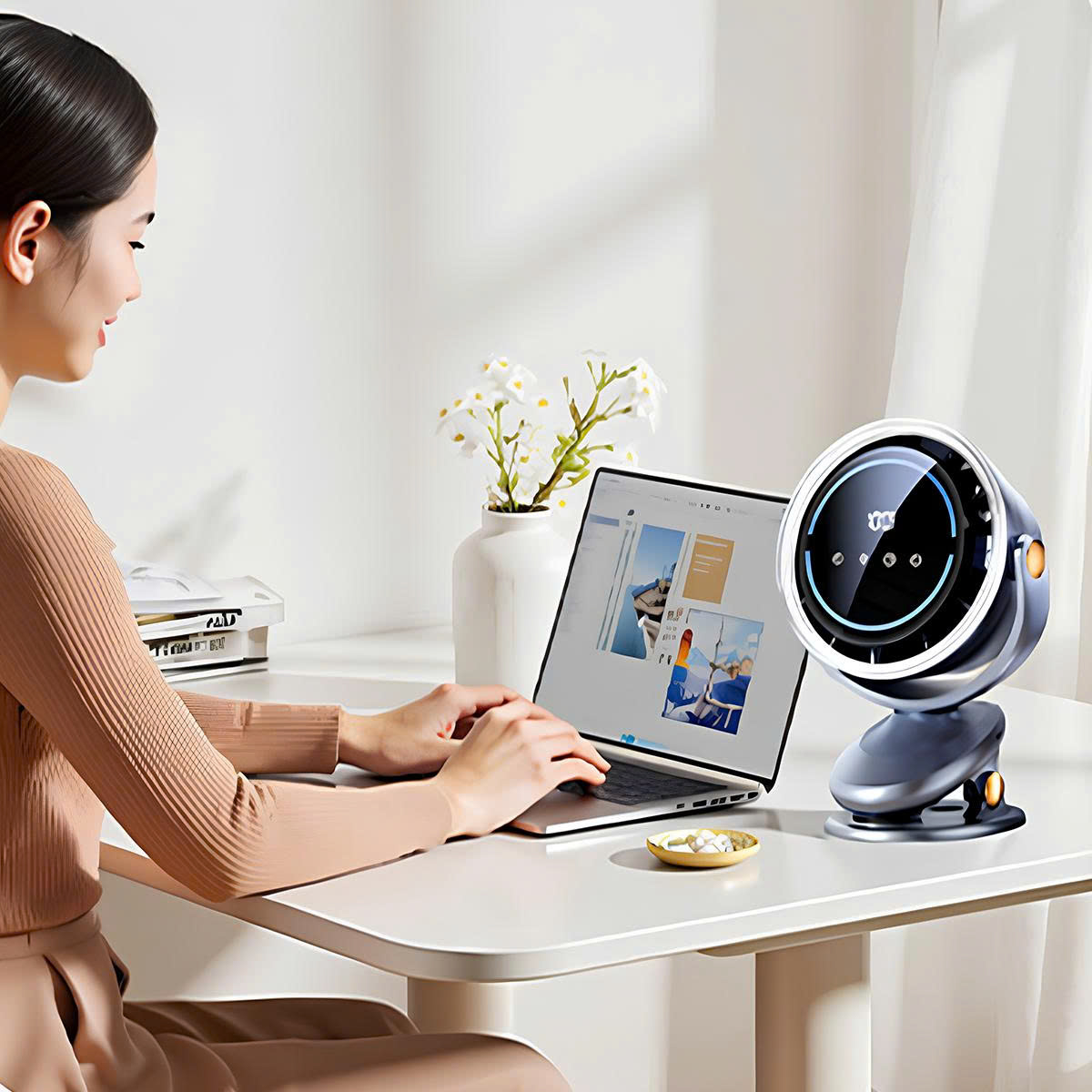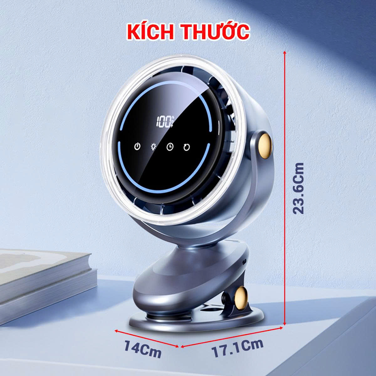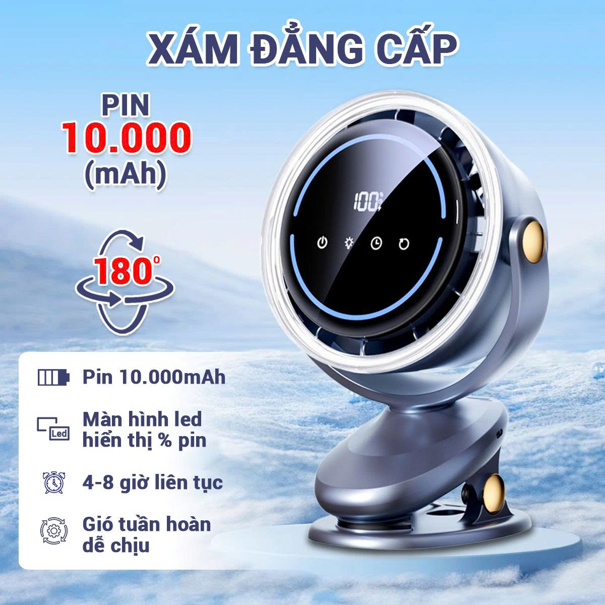 Quạt tích điện mini xoay tự động cao cấp 10.000mAh không gây tiếng ồn