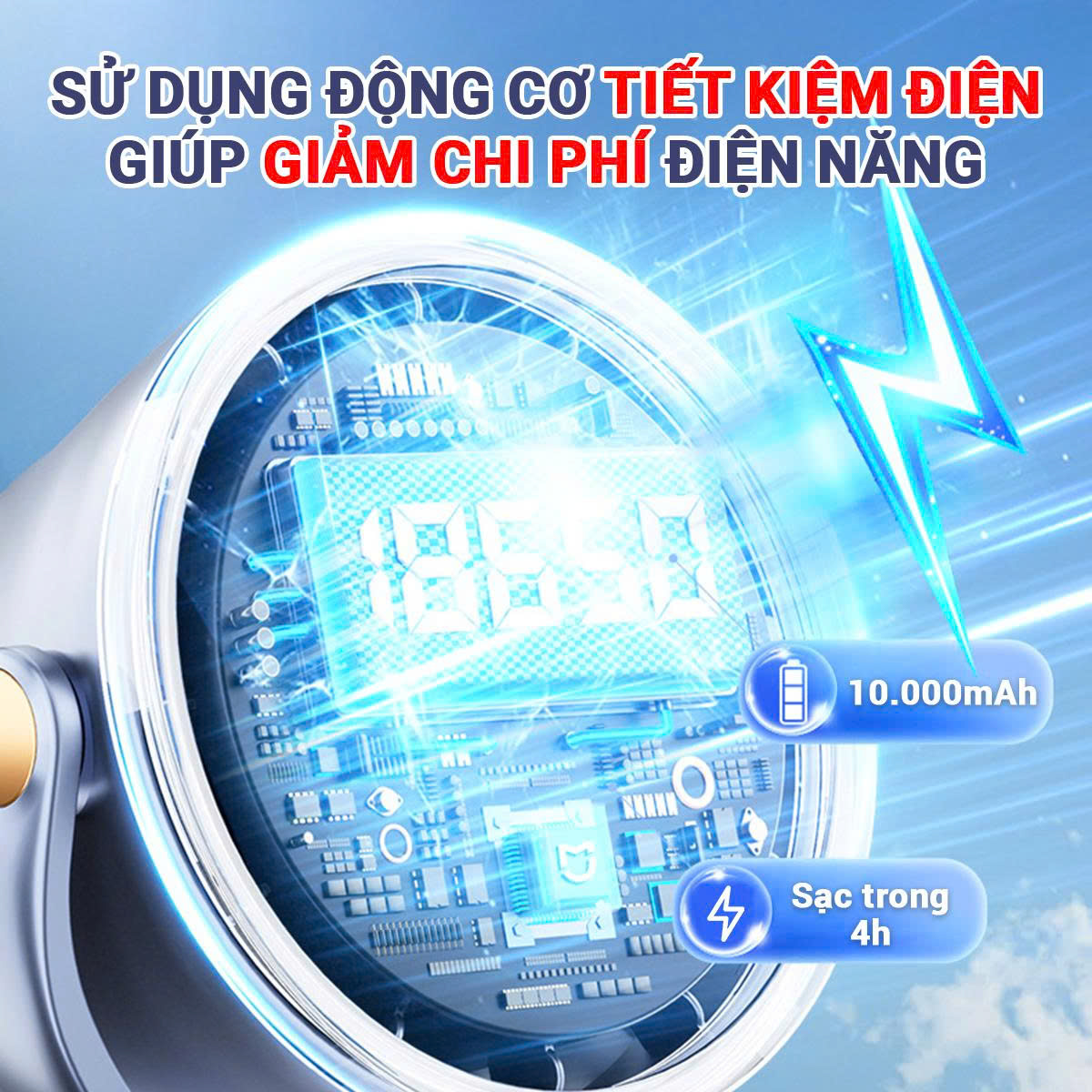 - Thiết kế màn hình kỹ thuật số cảm ứng, có chế độ hẹn giờ, hiển thị phần trăm pin