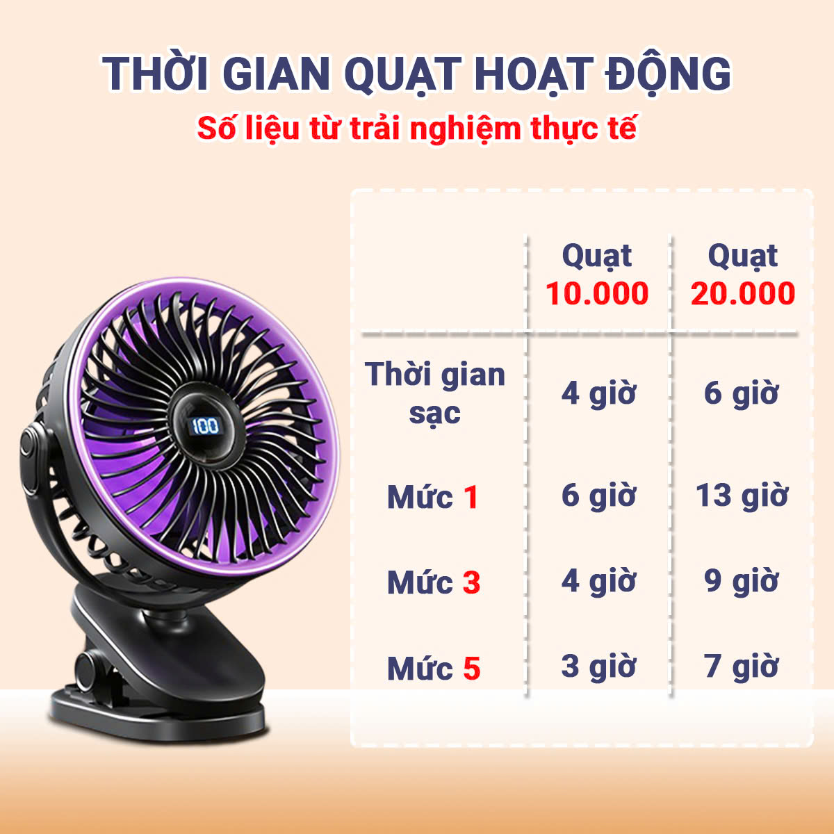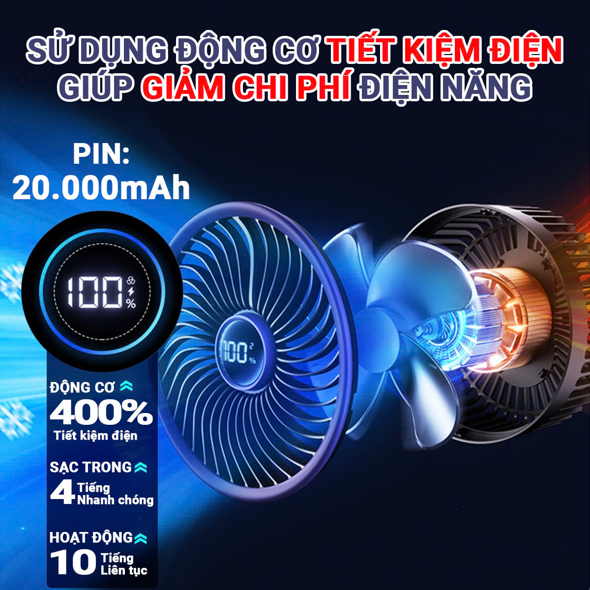 Quạt tích điện mini cao cấp 20000mah không gây tiếng ồn pin cao