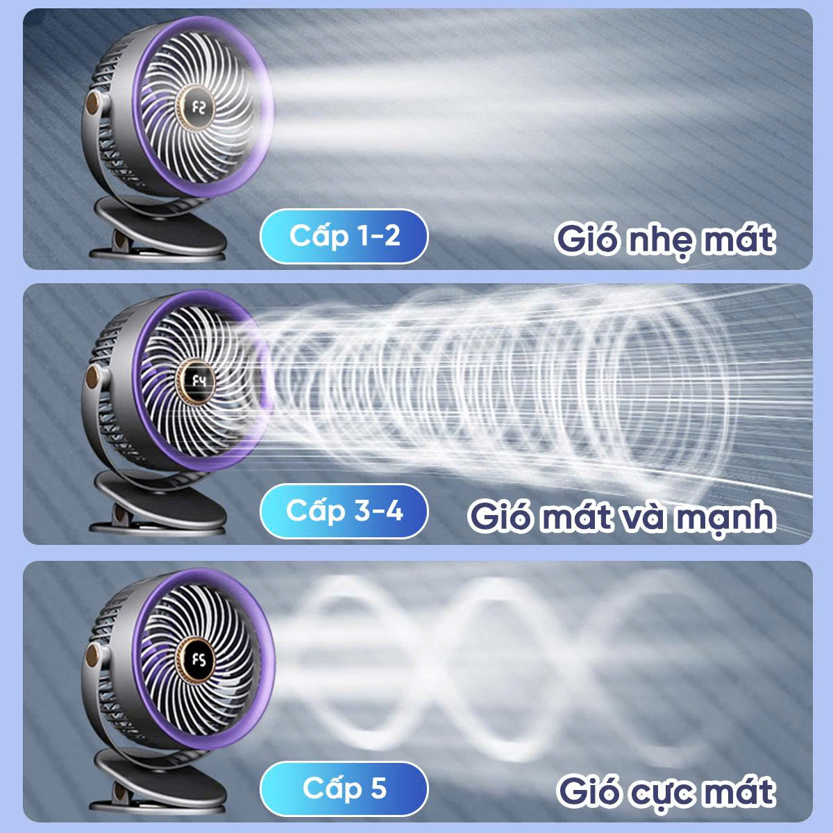 + Mức 4: Gió mạnh mẽ, làm mát tức thì
