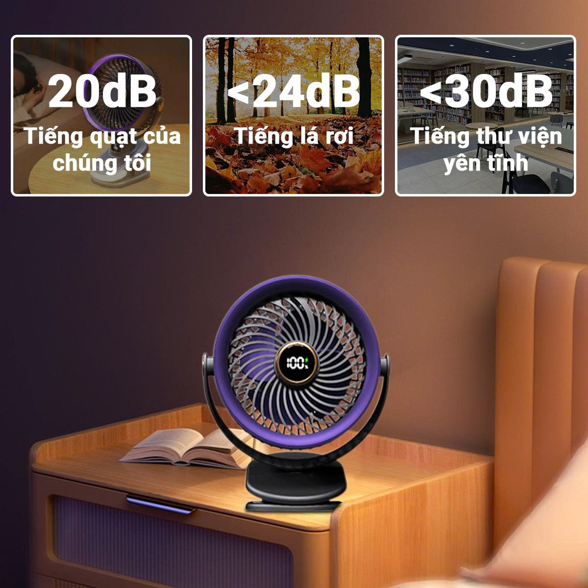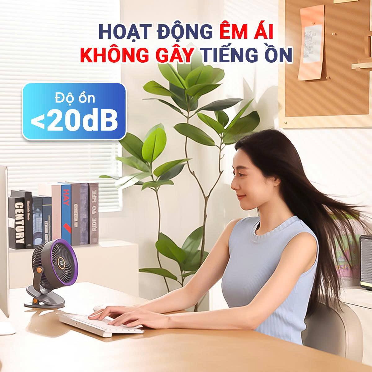- Độ ồn cực thấp (<20dB) đảm bảo không làm ảnh hưởng đến giấc ngủ của bé yêu hay sự tập trung của bạn khi làm việc