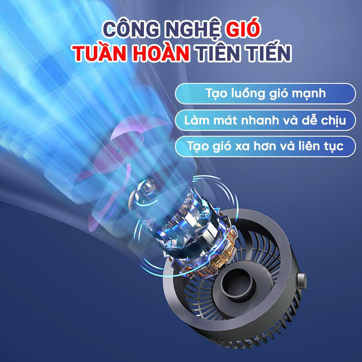- Công nghệ gió tuần hoàn tiên tiến: Tạo luồng gió mạnh mẽ, lan tỏa đều khắp không gian, mang lại cảm giác mát lạnh nhanh chóng và dễ chịu