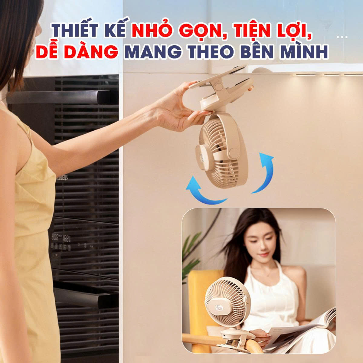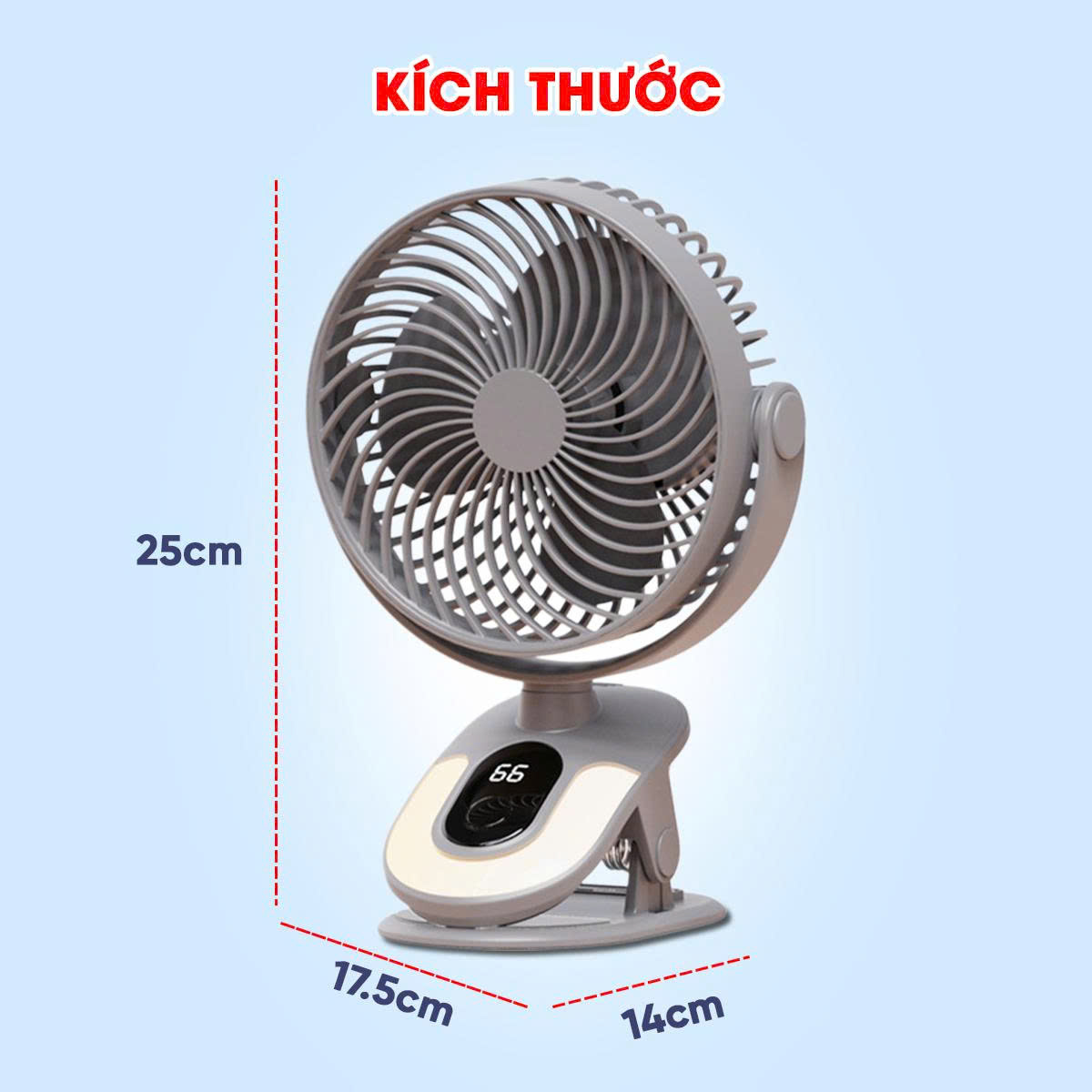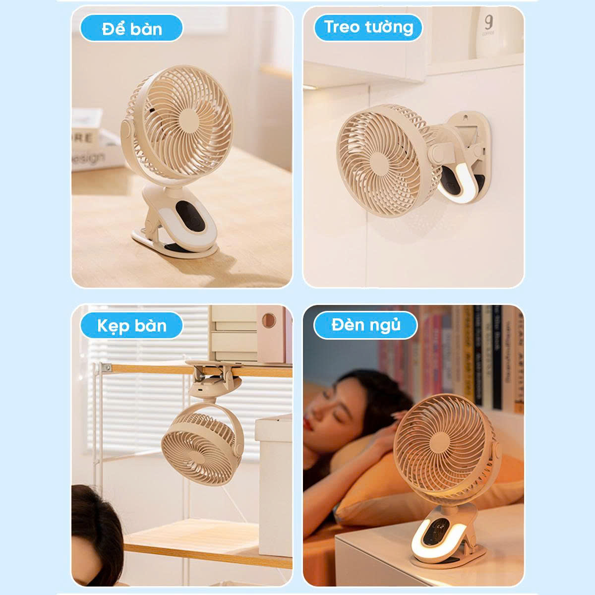 - Phần đế có thể kẹp vào bàn làm việc, đầu giường, xe đẩy khi ra ngoài...