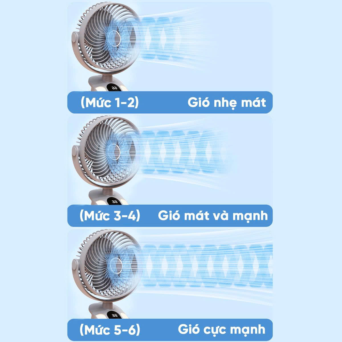 + Mức 3: Lưu thông gió mạnh mẽ, xua tan oi bức