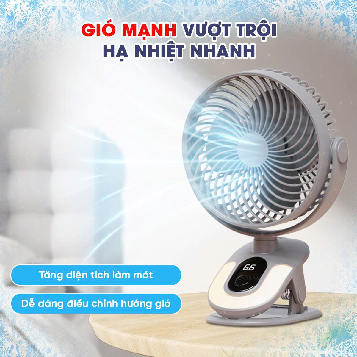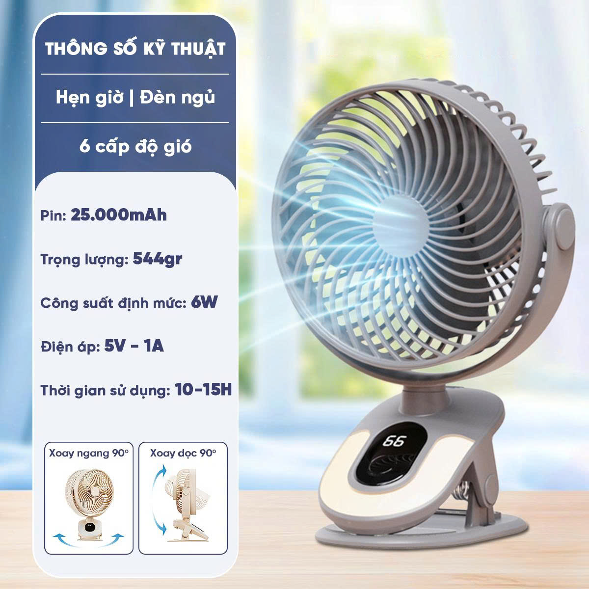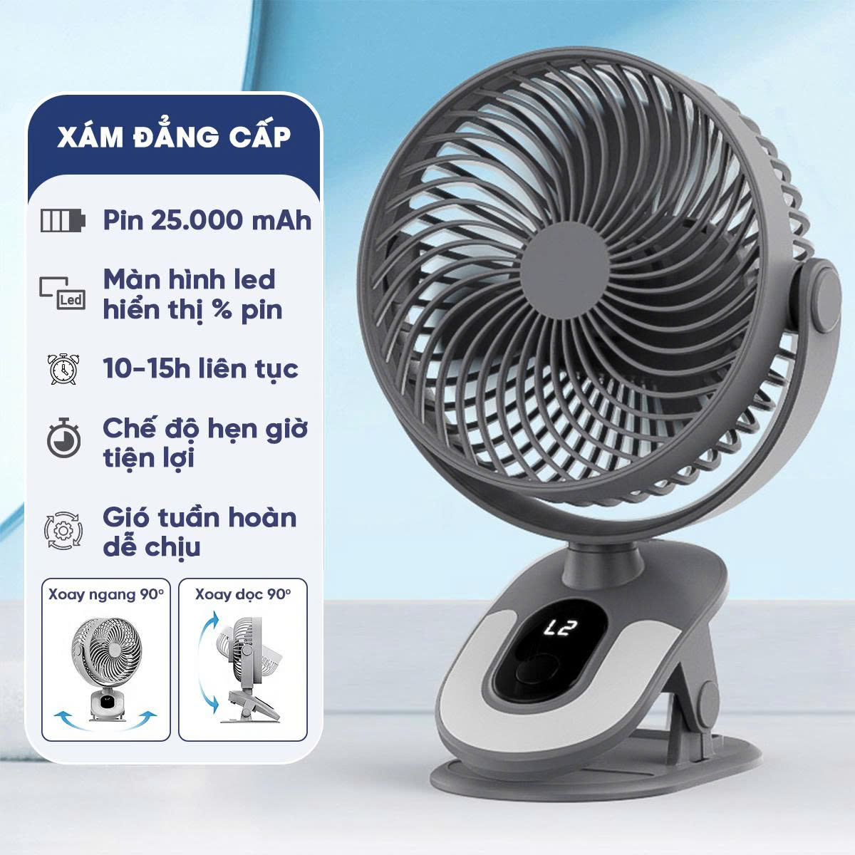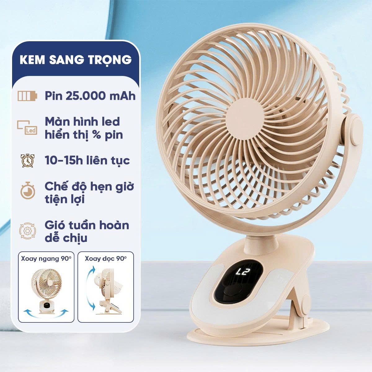 Quạt tích điện mini xoay tự động cao cấp 25.000mAh không gây tiếng ồn