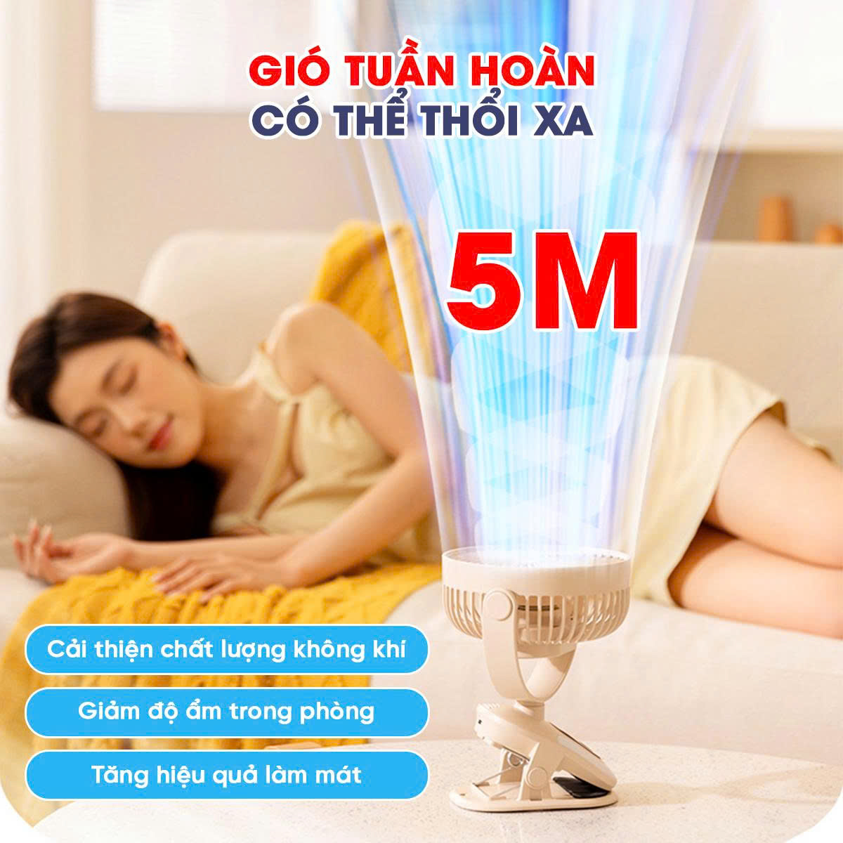 + Mức 5: Gió mát cực mạnh, sảng khoái tối đa