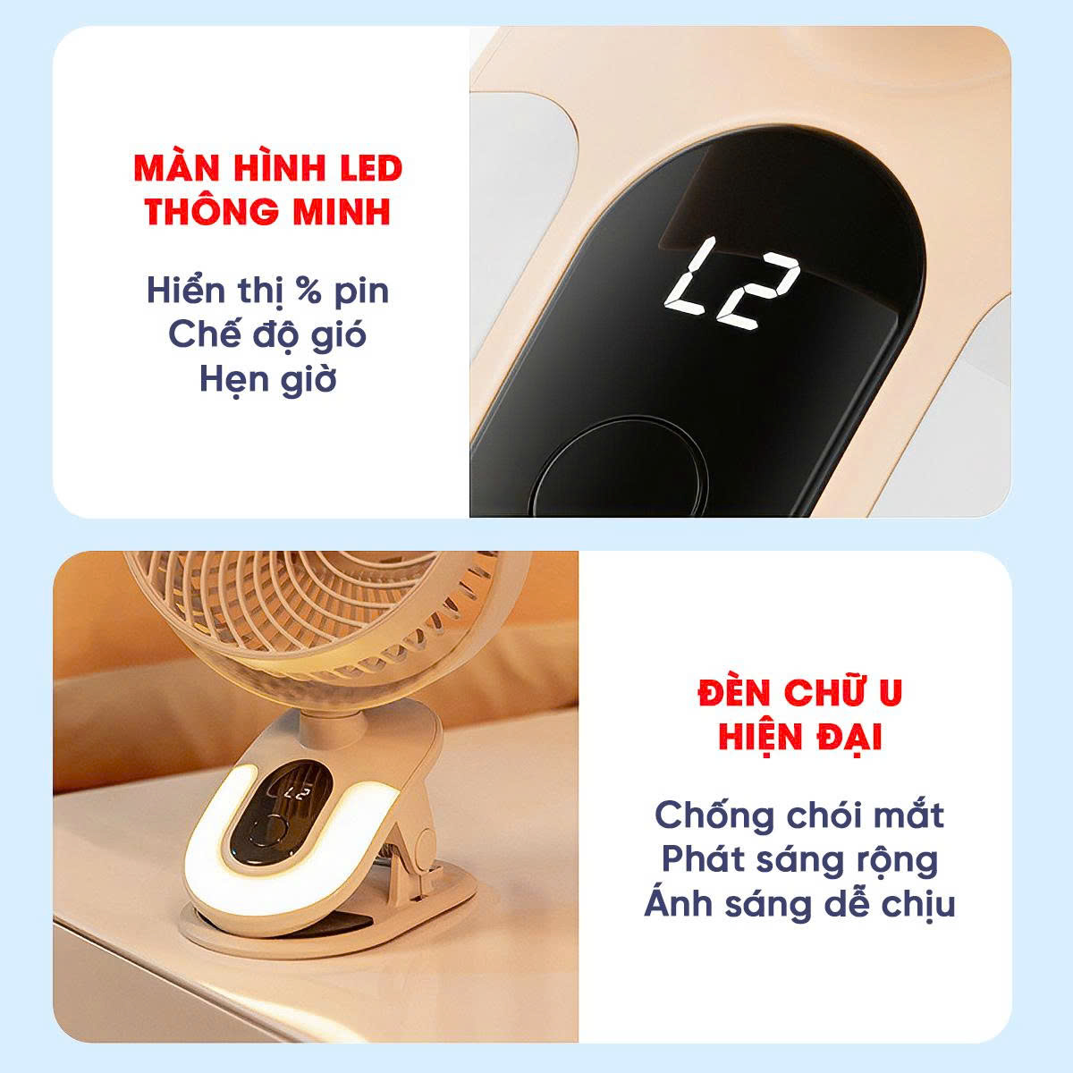 - Thiết kế màn hình kỹ thuật số, có chế độ hẹn giờ, hiển thị phần trăm pin