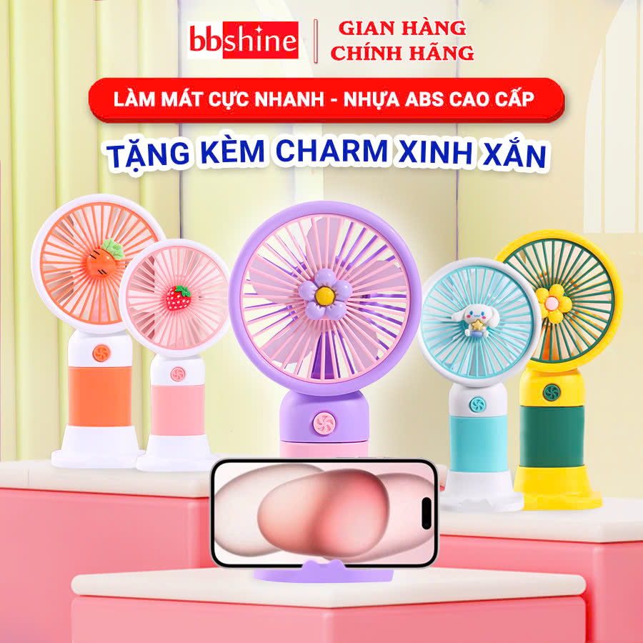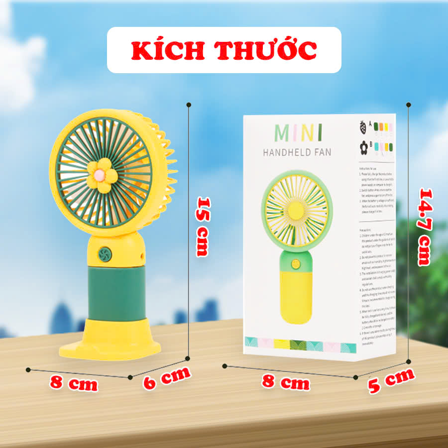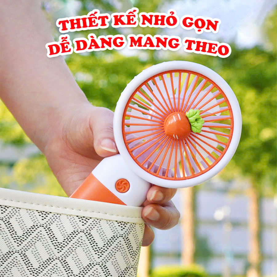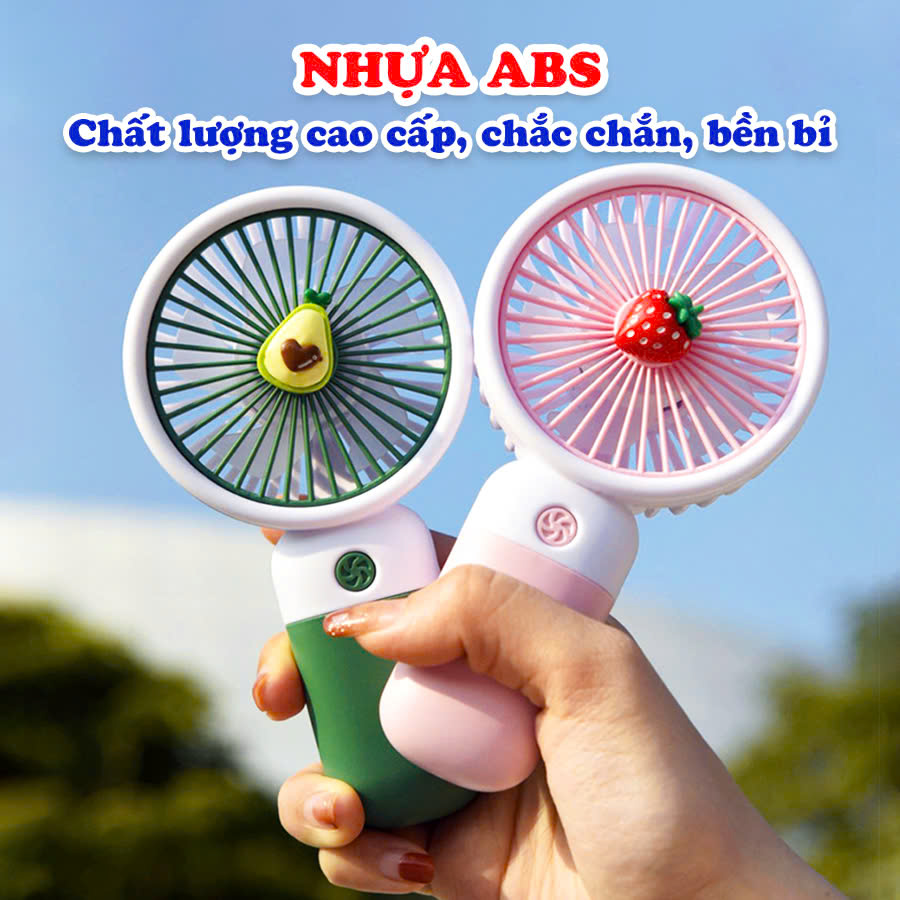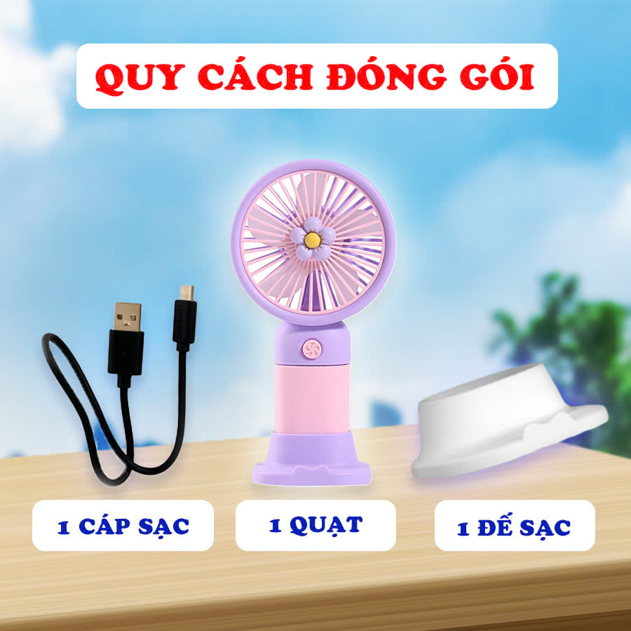 Quạt tích điện mini, Quạt cầm tay mini sạc điện tặng kèm charm nhỏ gọn tiện lợi