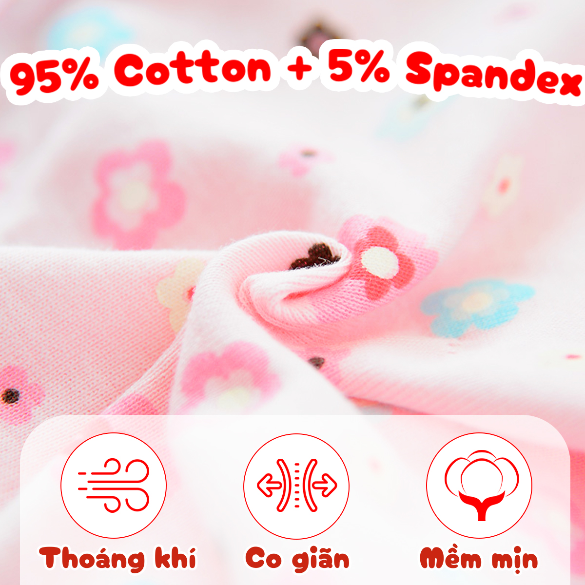 - Làm từ vải cotton, không gây kích ứng với da bé, bên cạnh đó còn hút ẩm tuyệt đối, mang đến cảm giác thoải mái khi bé mặc