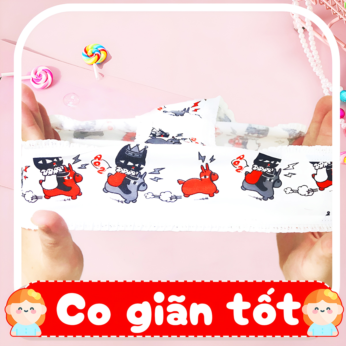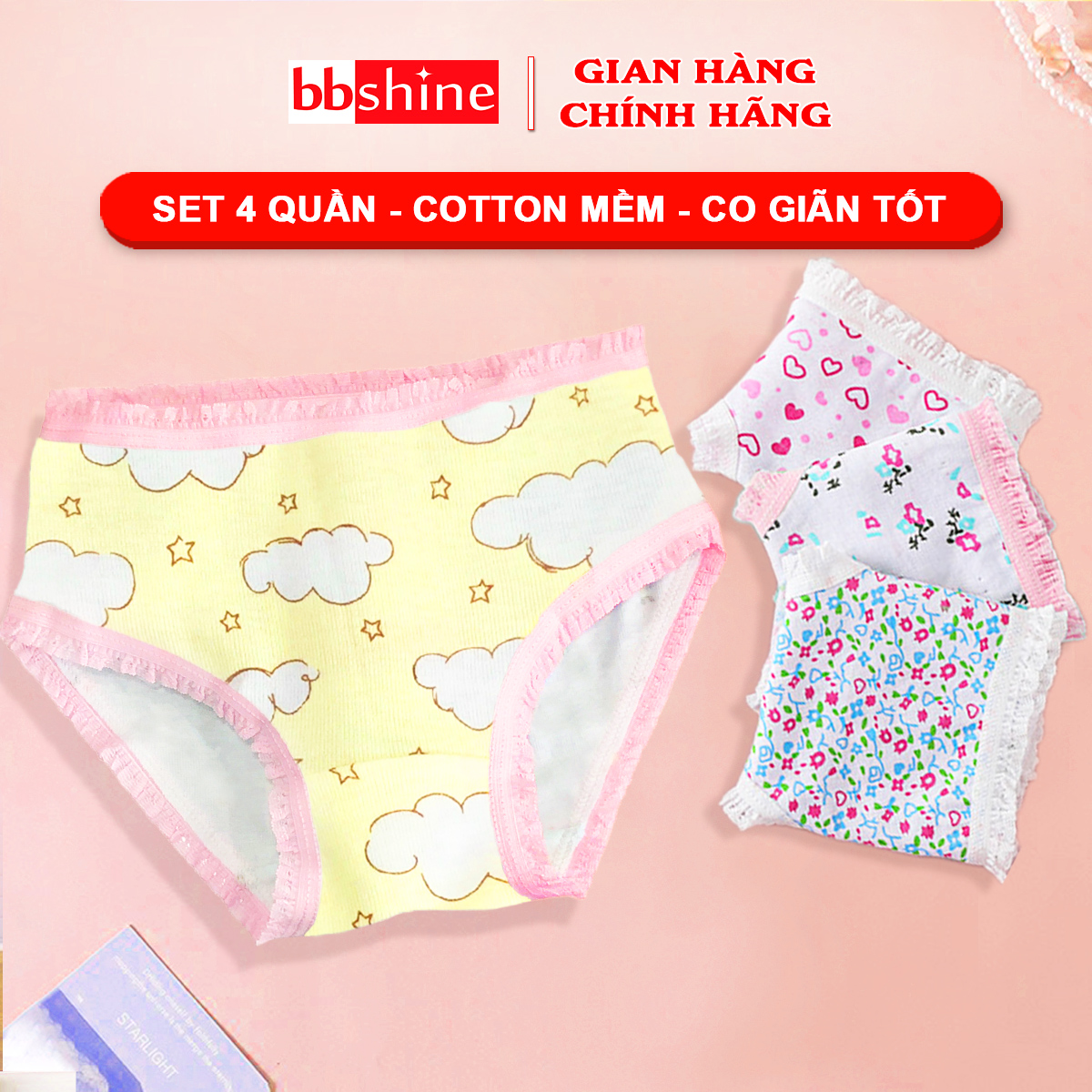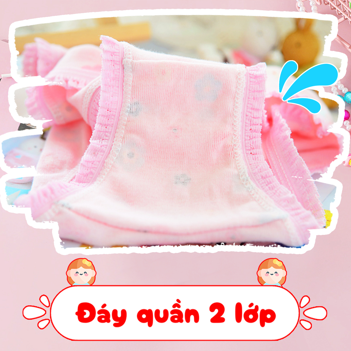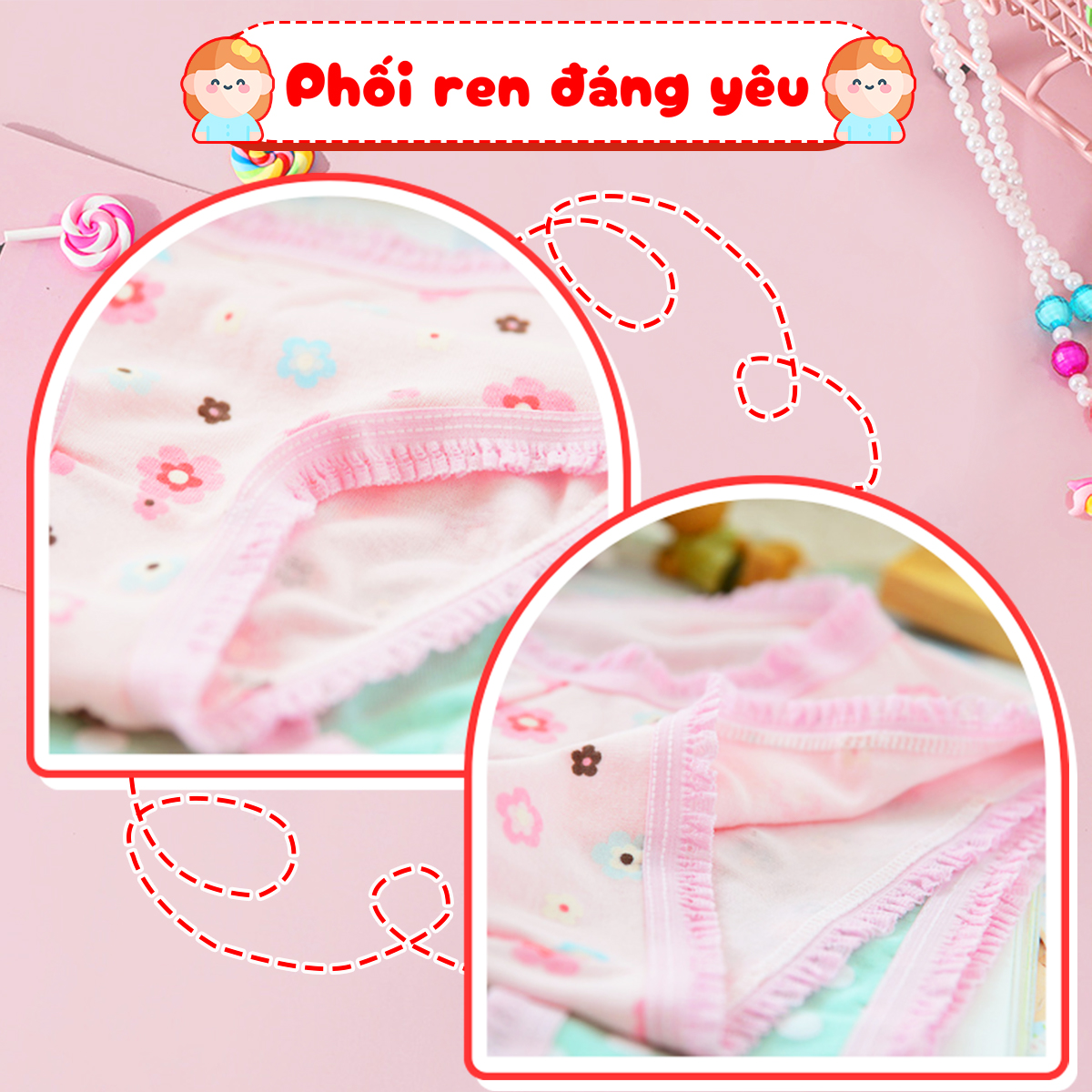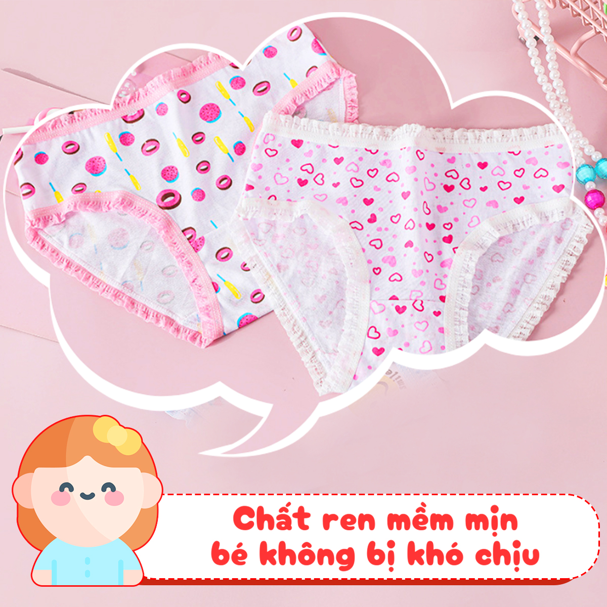 Quần chip bé gái, Set 4 quần lót bé gái chất cotton cao cấp viền ren phối nhiều họa tiết đáng yêu phù hợp cho bé mặc đi học cả ngày, mặc ngủ...