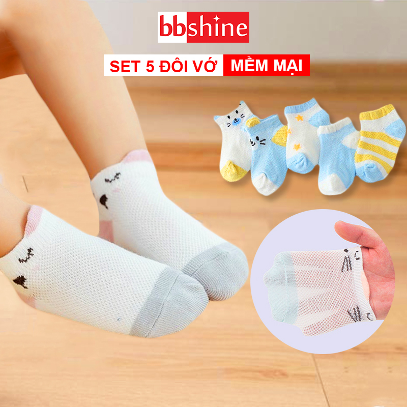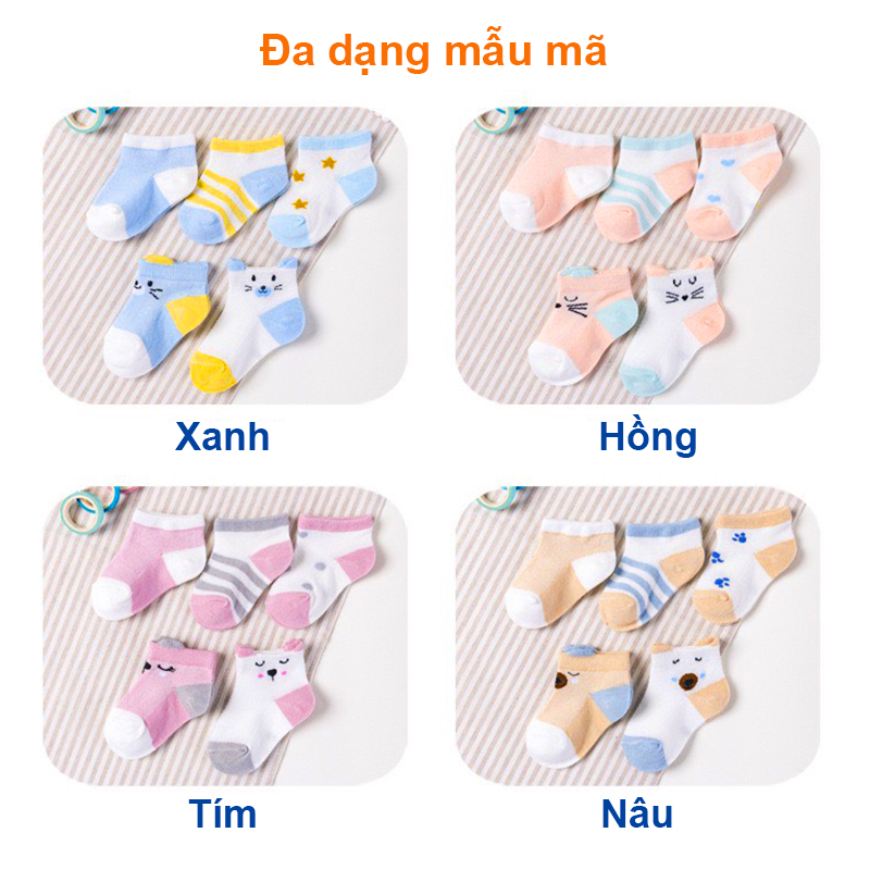 Tất cho bé gái và bé trai, Set 5 vớ cho bé 0-2 tuổi hình thú chất cotton co giãn tốt cho bé thoải mái mang tập đi trong nhà, hay mang với giày đi ra ngoài...