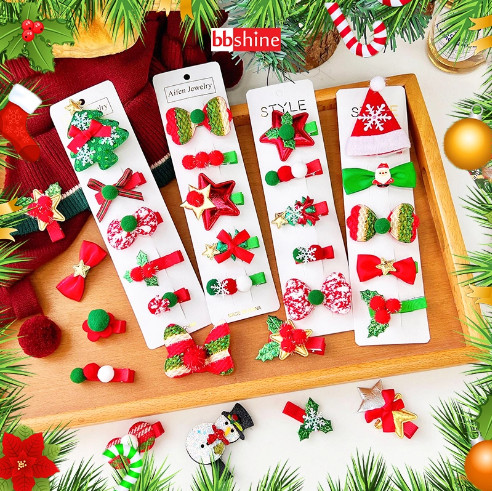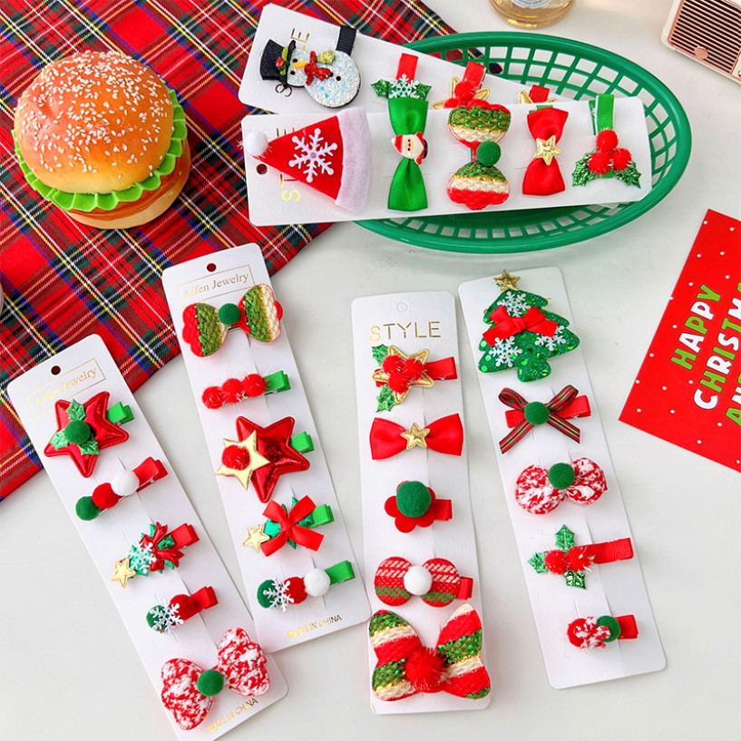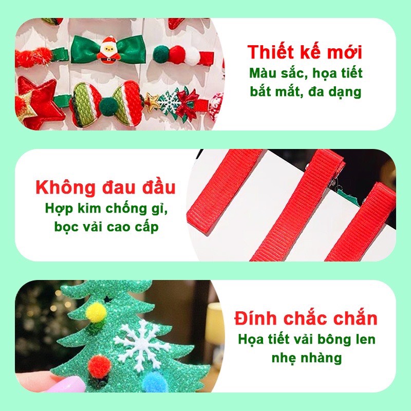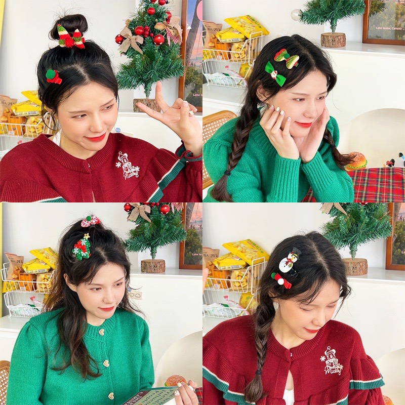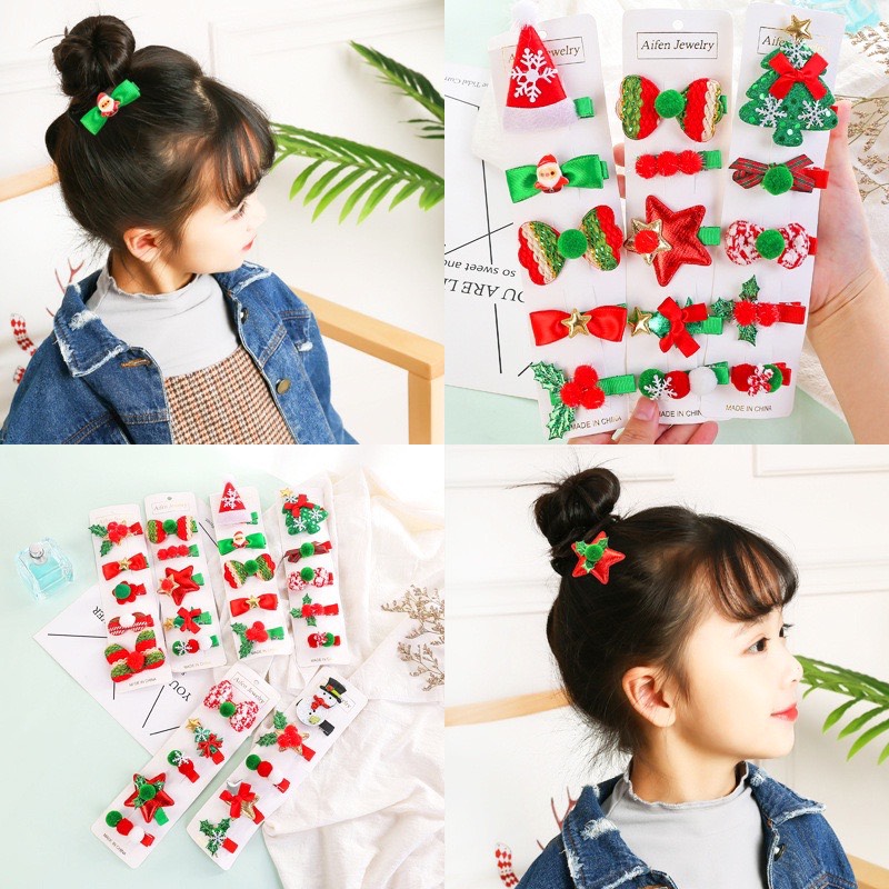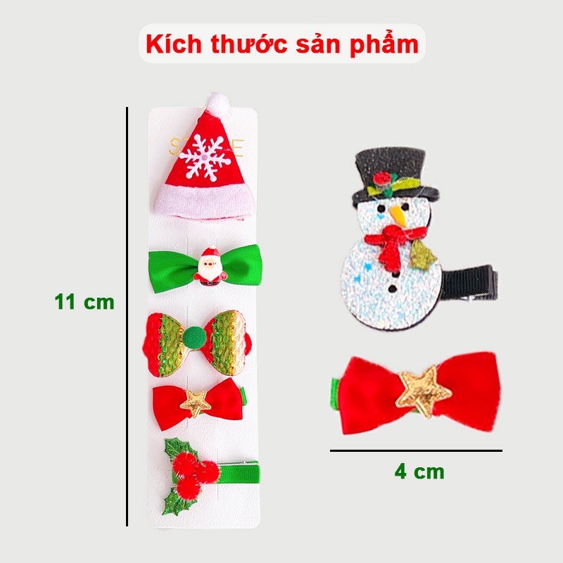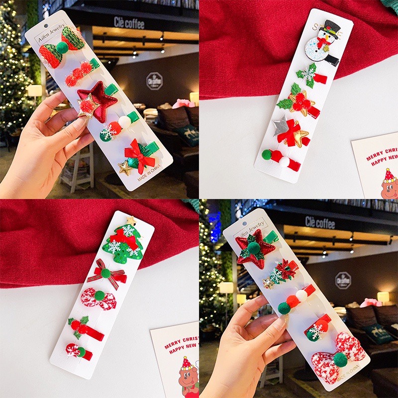 Kẹp tóc Noel, Set 5 kẹp tóc Giáng sinh nhiều họa tiết đáng yêu phối màu xanh đỏ chủ đạo xinh xắn thoải mái phối đồ đi chơi Giáng sinh