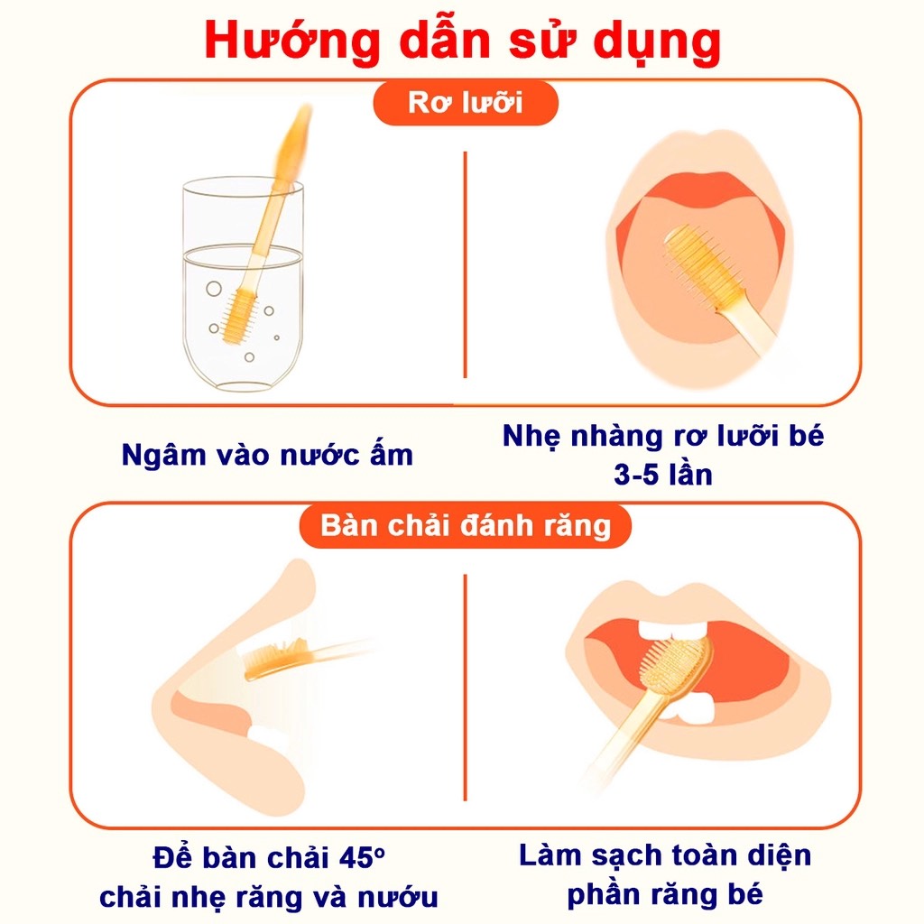- Set rơ lưỡi giúp làm sạch nướu và chức năng gần giống bàn chải trẻ nhỏ khi chưa có răng