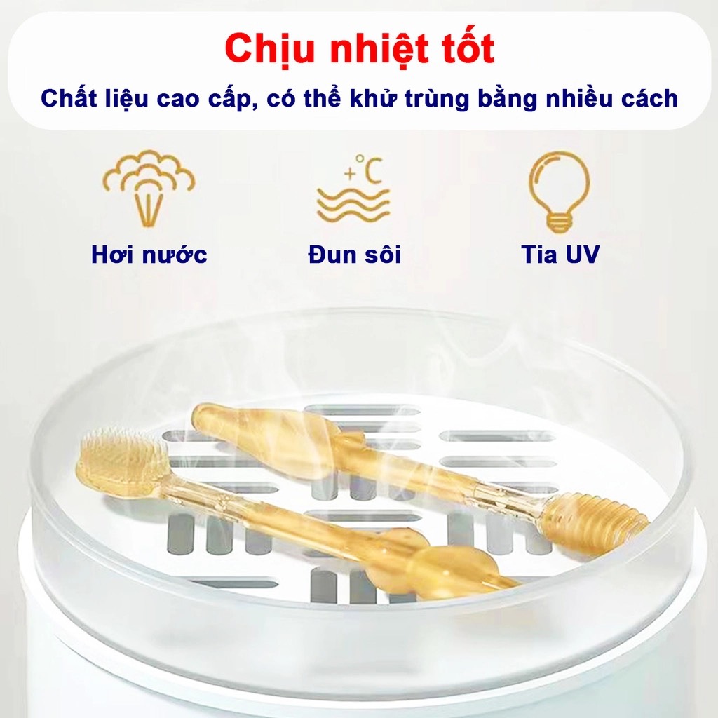 - Với nắp đậy chống bụi nhỏ gọn có thể đảm bảo bộ bàn chải đánh răng sạch sẽ và lành mạnh một cách hiệu quả, đồng thời nó cũng có thể tiệt trùng ở nhiều nhiệt độ khác nhau
