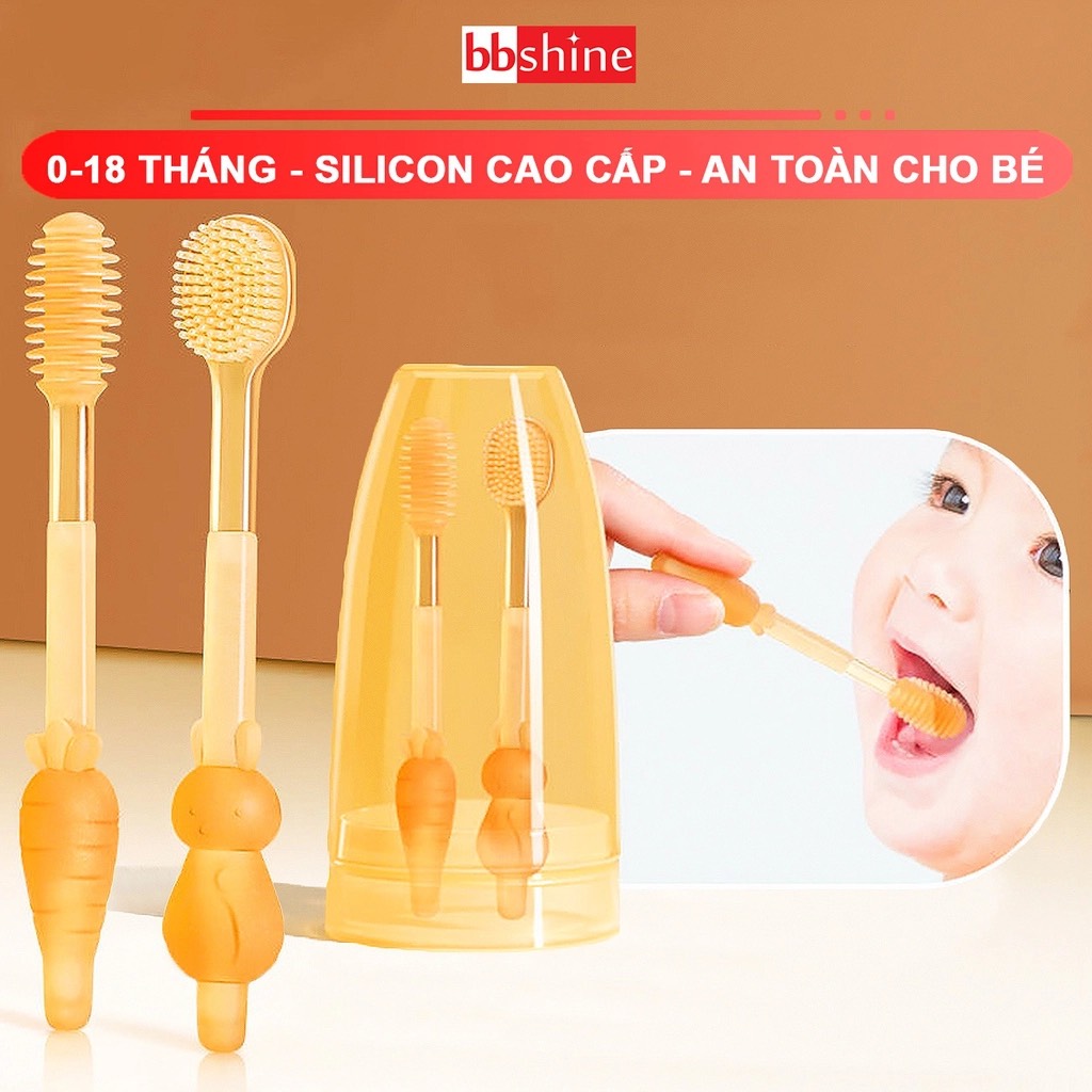 Bàn chải đánh răng cho bé silicon cao cấp BBShine, Set rơ lưỡi cho bé 0-18 tháng mềm mại – SS022