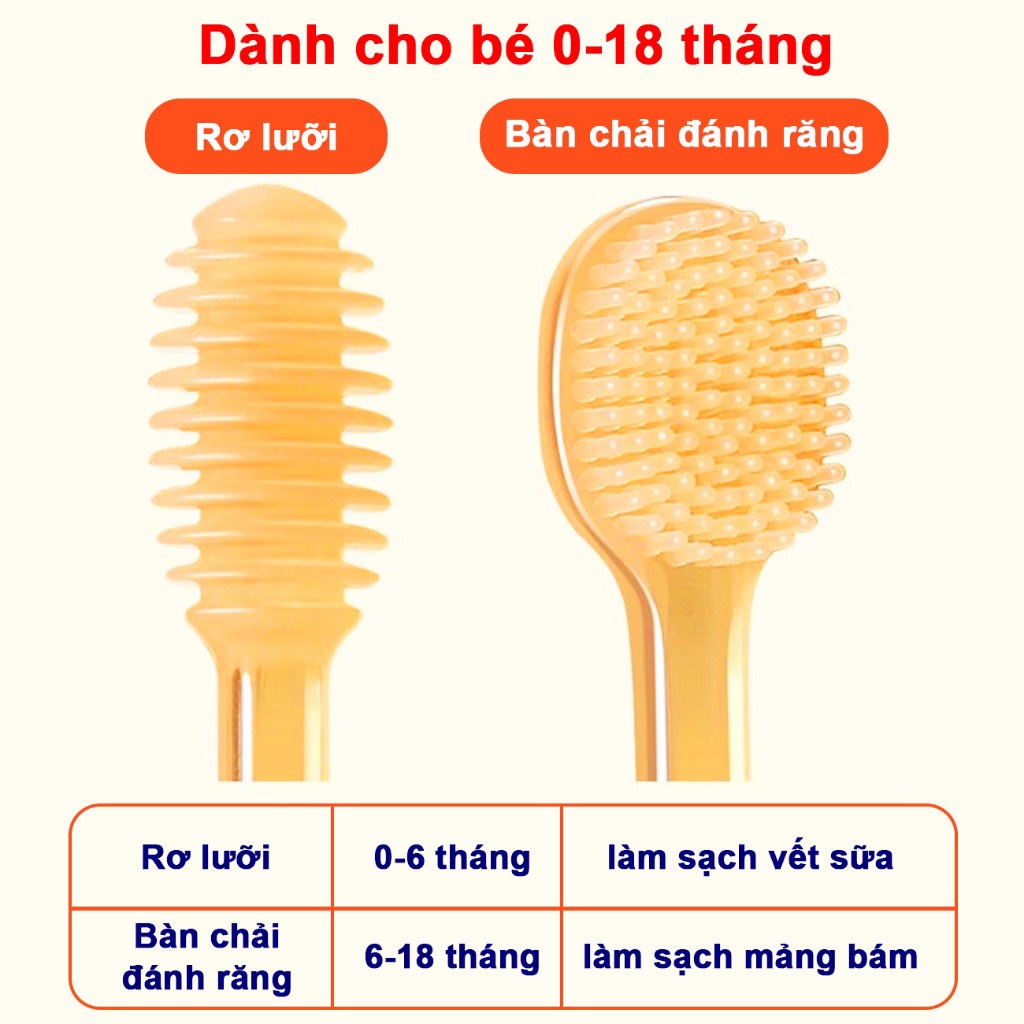 Bàn chải đánh răng cho bé, Set rơ lưỡi cho bé 0-18 tháng silicon cao cấp mềm mại
