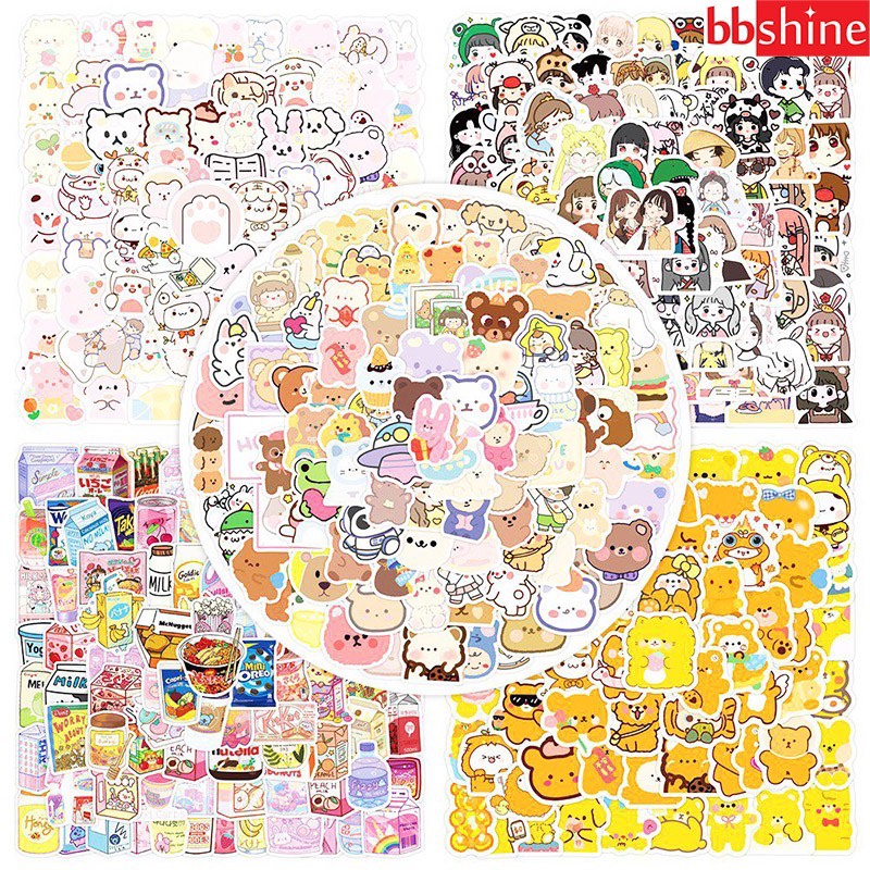 Sticker dán sổ, set 100 sticker hoạt hình trang trí nhiều chủ để xinh xắn cho bé yêu