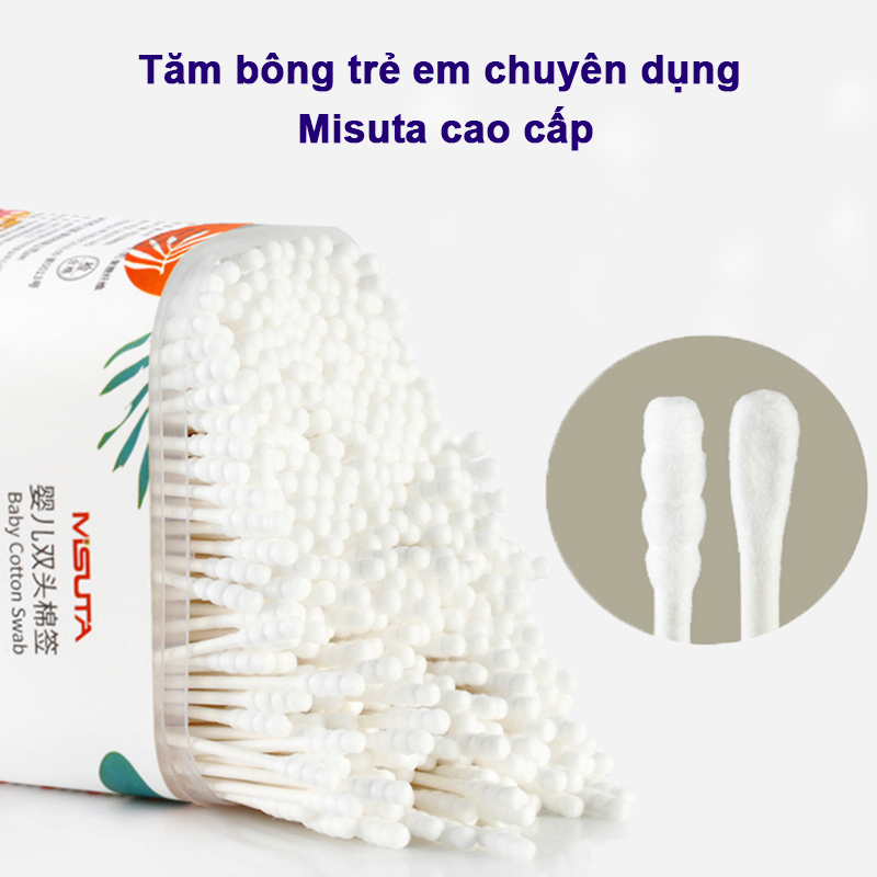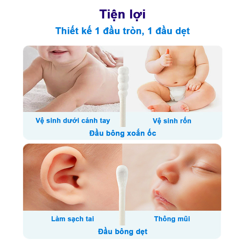 - Tăm bông sơ sinh có đầu tăm kích thước 3.5mm phù hợp với các bé.