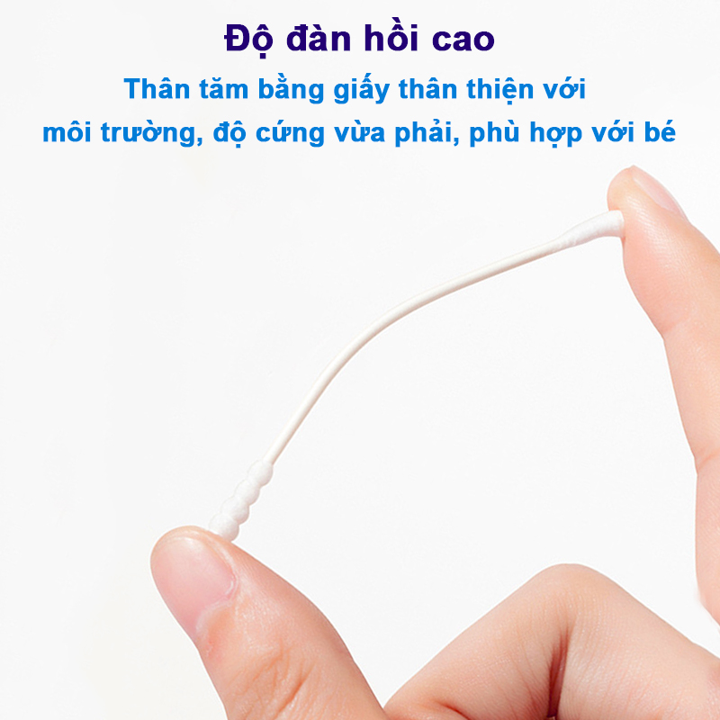 - Tăm bông sơ sinh có thân tăm bằng giấy thân thiện với môi trường, độ cứng vừa phải, phù hợp với các bé.