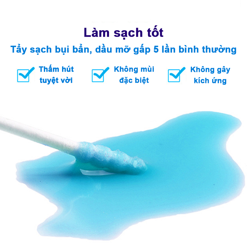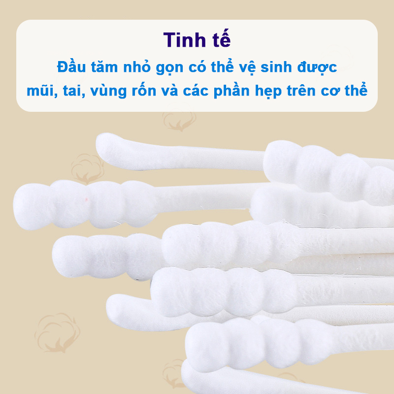 - Tăm bông sơ sinh có độ đàn hồi cao, thấm hút bụi bẩn, dầu mỡ gấp 5 lần bình thường.