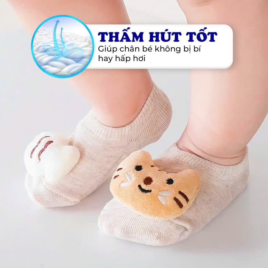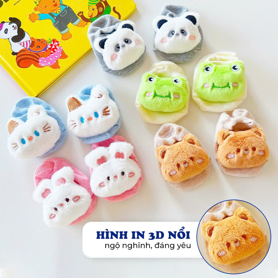 Tất cho bé 0-12 tháng hình thú 3D chống trượt nhiều màu sắc tươi sáng phù hợp cho bé mang đi trong nhà hoặc phối giày đi học, đi chơi
