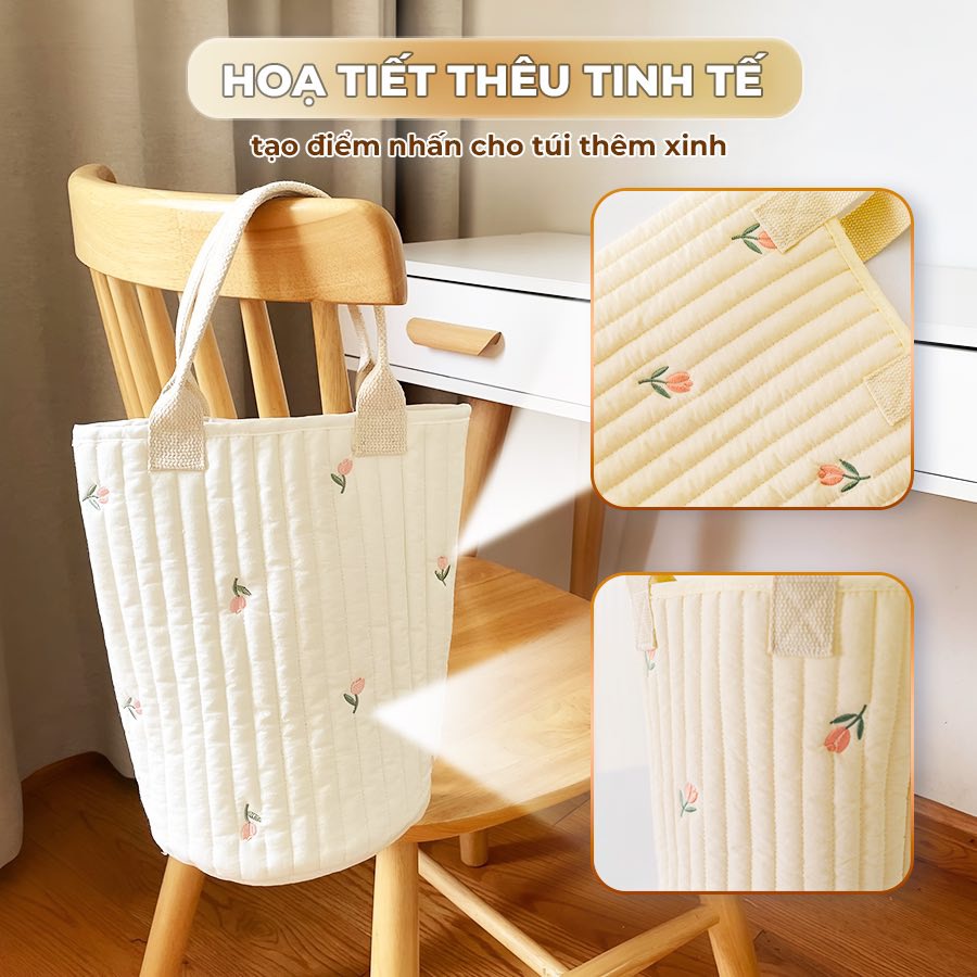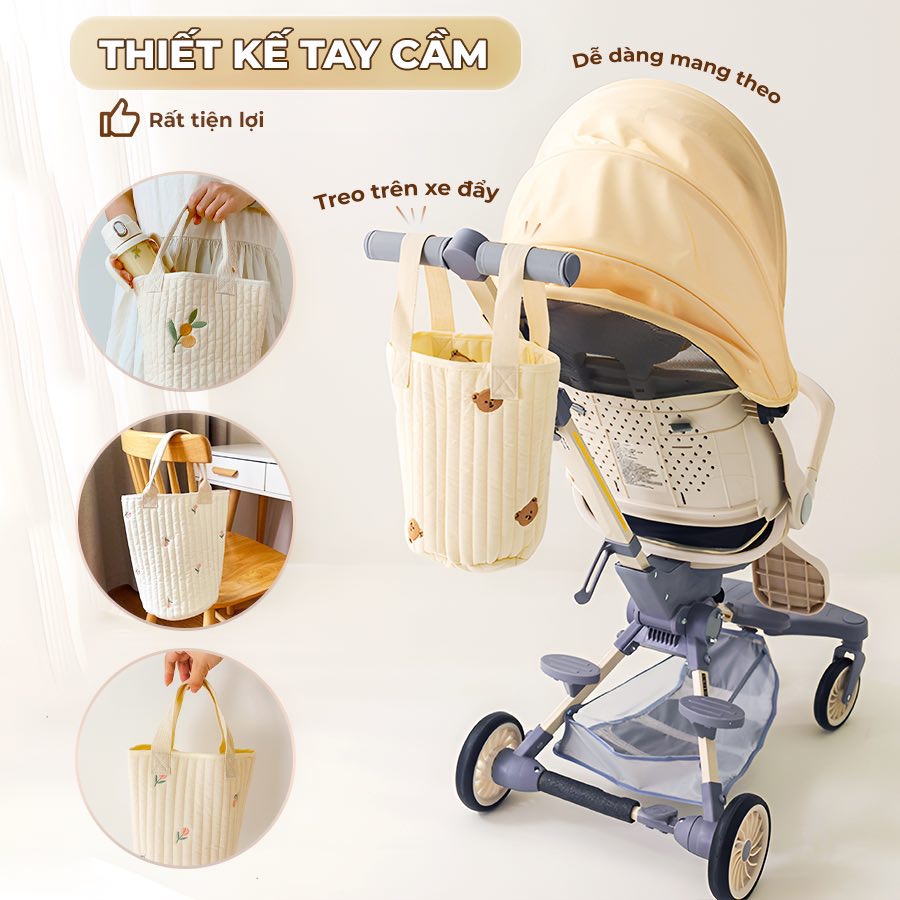 Túi bỉm sữa đa năng phong cách Hàn Quốc nhỏ gọn họa tiết thêu xinh xắn