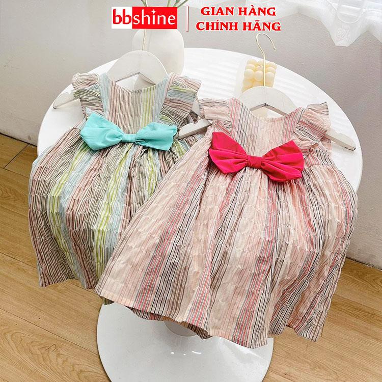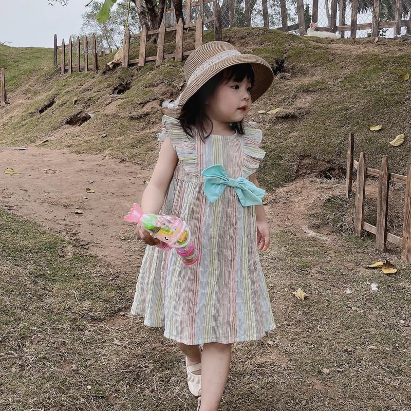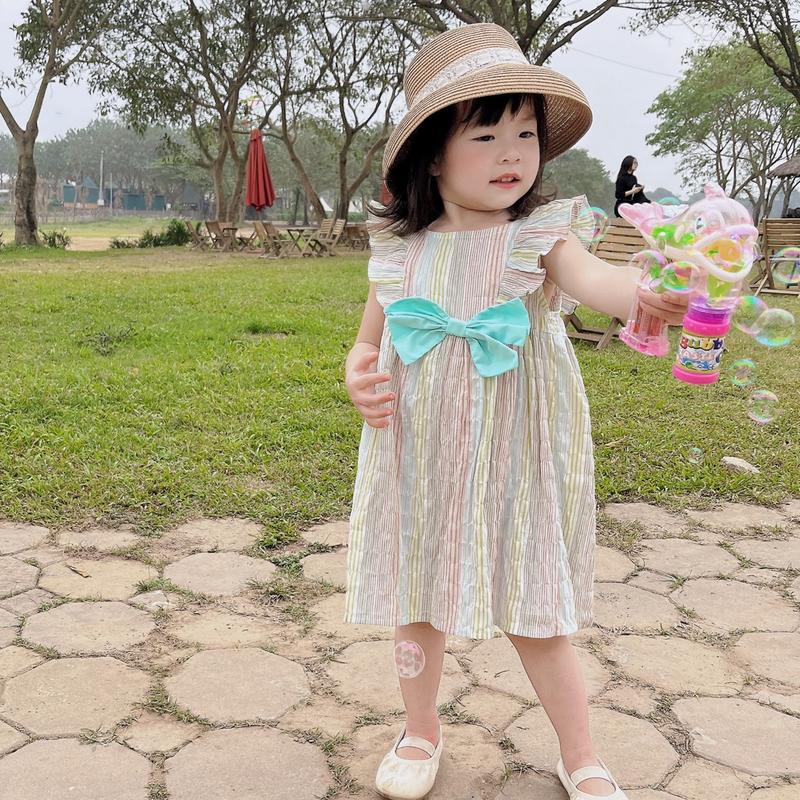 "Váy bé gái 10-27kg chất thô đũi kẻ cao cấp tay cánh tiên phối nơ siêu xinh phù hợp cho bé mặc đi học, đi tiệc, đi chơi, dạo phố, đi biển, đi du lịch, diễn văn nghệ...