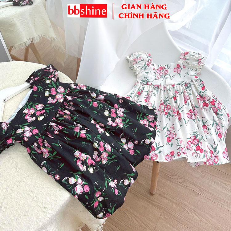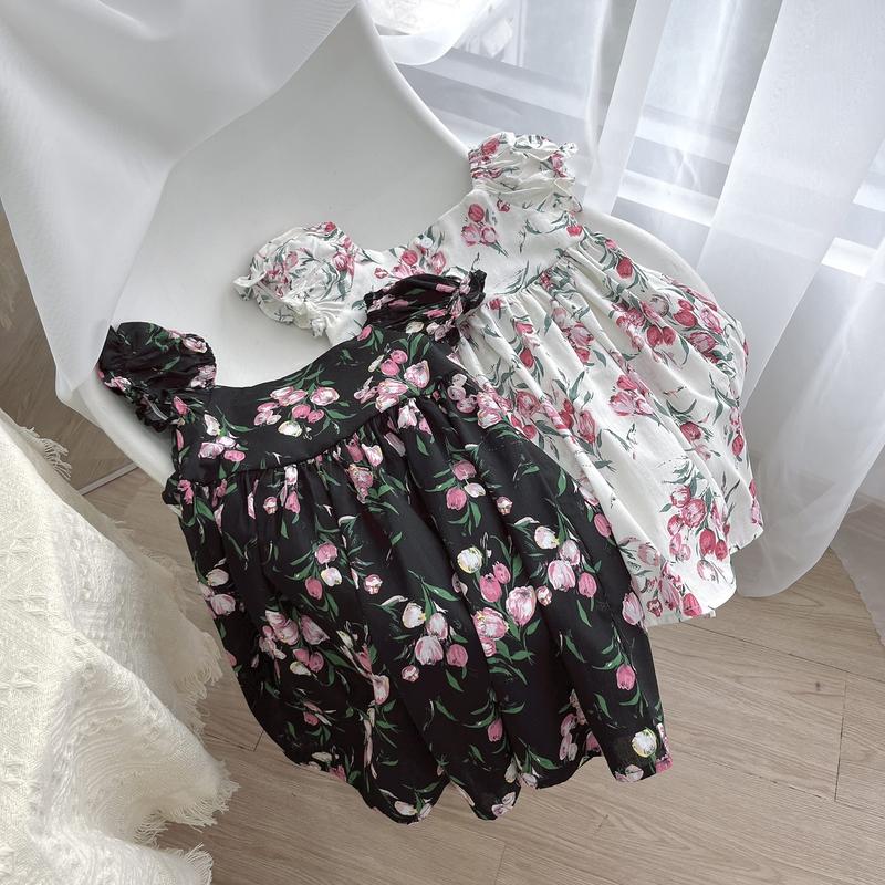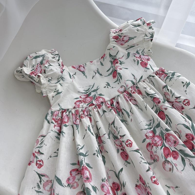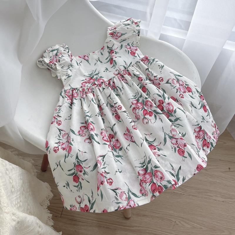 Đầm bé gái 10-27kg cổ vuông xinh xắn tay bồng họa tiết hoa tulip siêu đáng yêu phù hợp cho bé mặc đi học, đi tiệc, đi chơi, dạo phố, đi biển, đi du lịch, diễn văn nghệ...