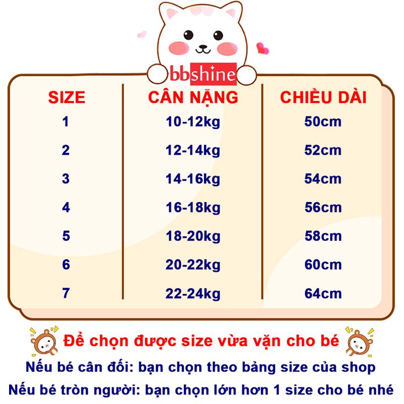 (Mẹ vui lòng chọn size theo cân nặng và chọn trừ hao lớn hơn 1 size cho bé mặc được thoải mái nhé)