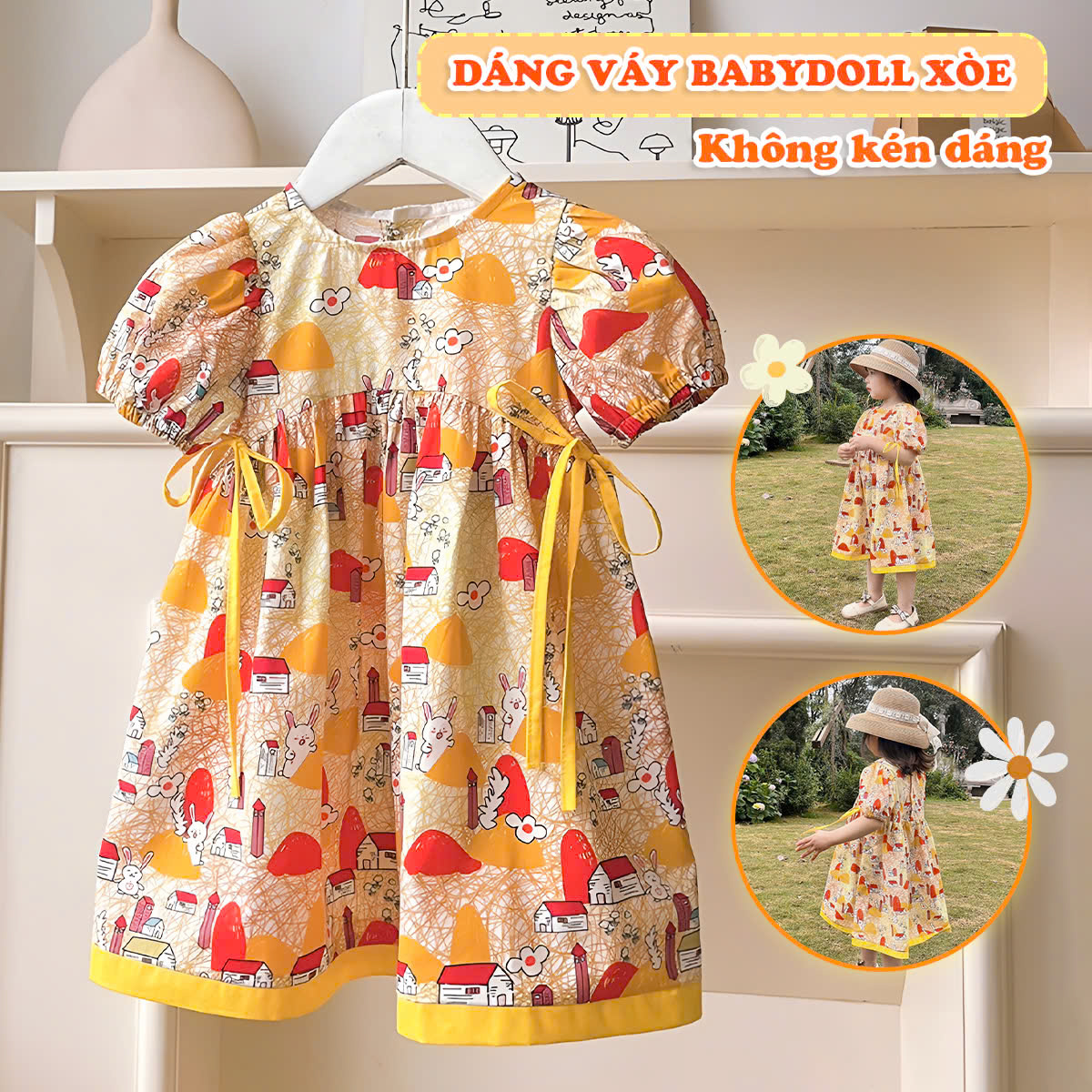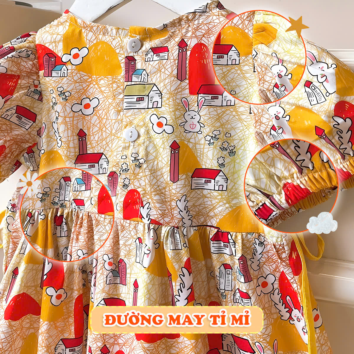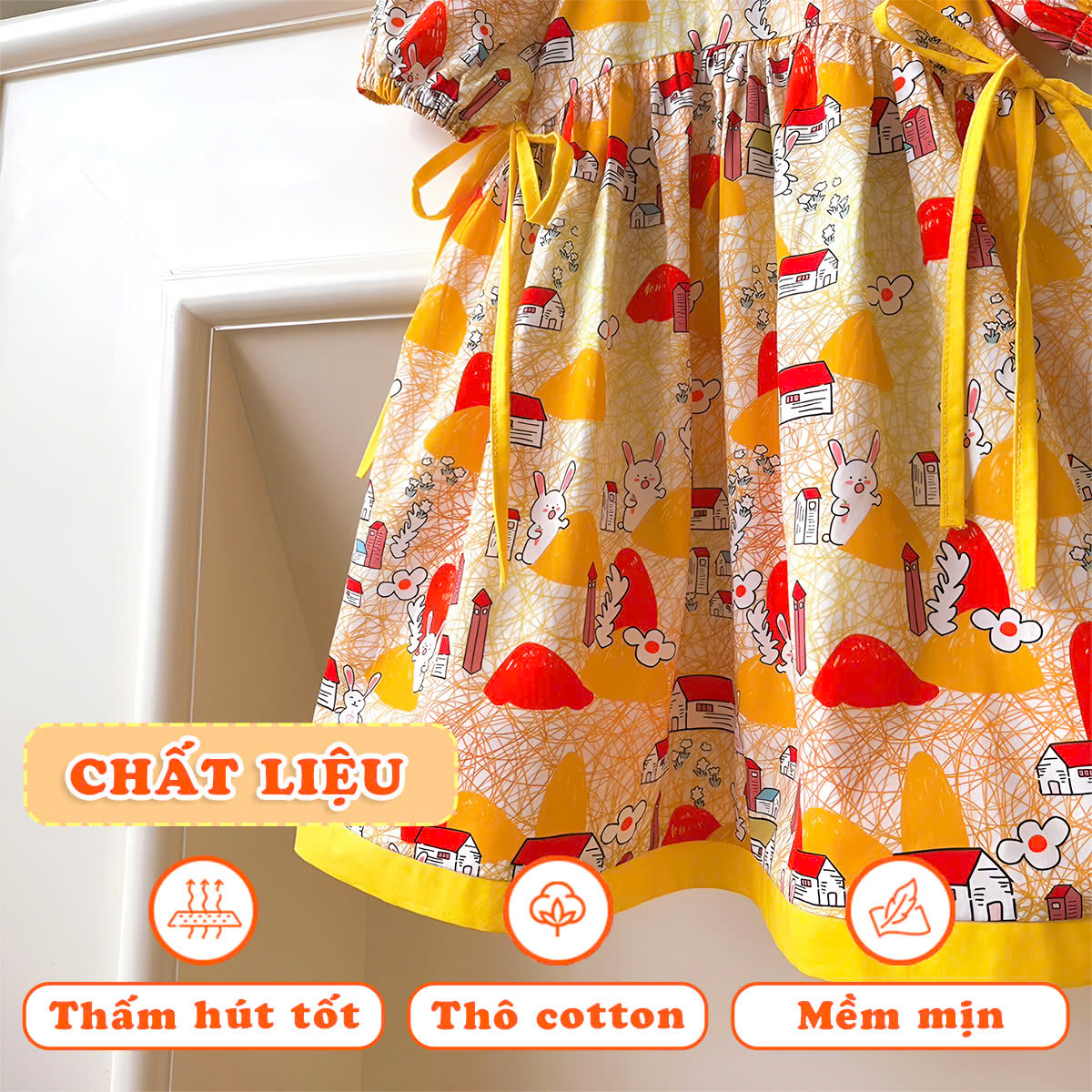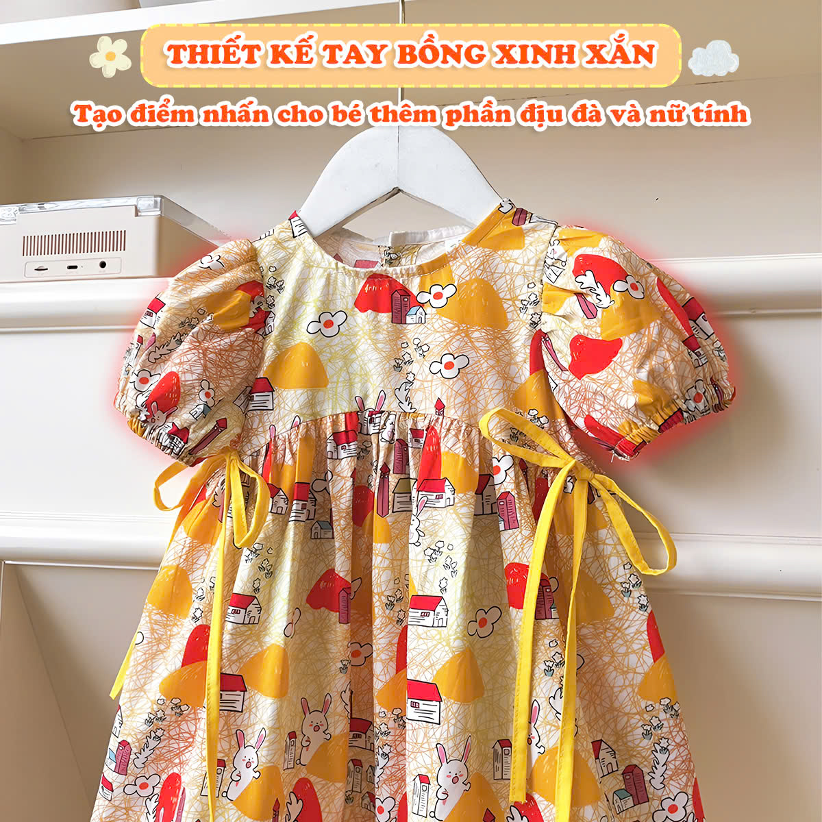 Váy bé gái, Đầm bé gái 10-35kg họa tiết thỏ tay bồng phối màu siêu đáng yêu phù hợp cho bé mặc đi học, đi tiệc, đi chơi, dạo phố, đi biển, đi du lịch, diễn văn nghệ...