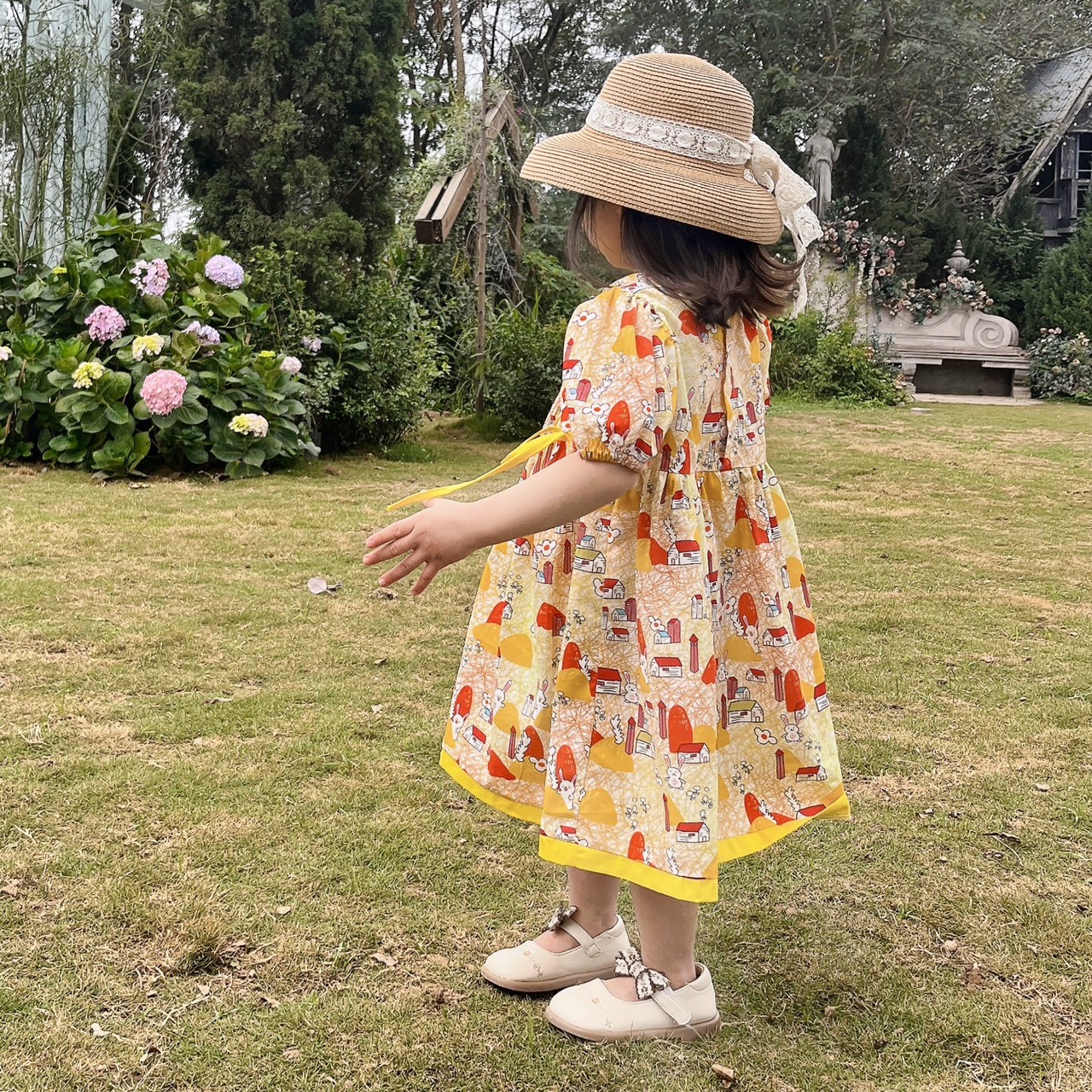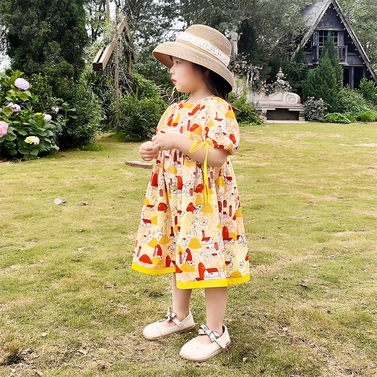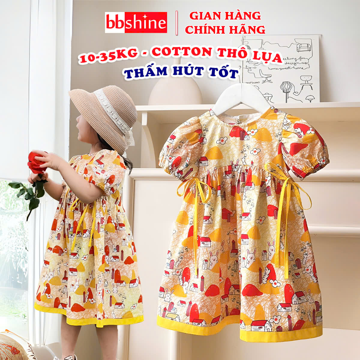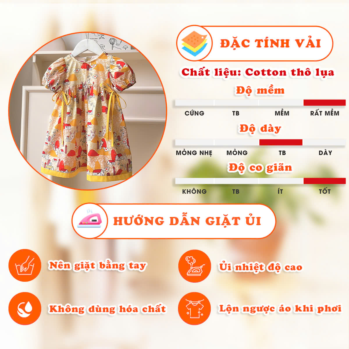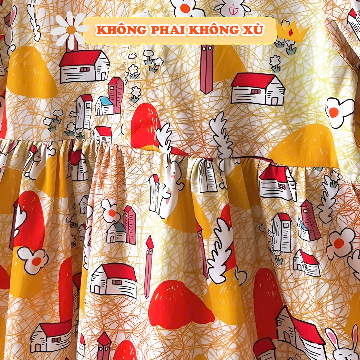 Váy bé gái, Đầm bé gái 10-35kg họa tiết thỏ tay bồng phối màu siêu đáng yêu phù hợp cho bé mặc đi học, đi tiệc, đi chơi, dạo phố, đi biển, đi du lịch, diễn văn nghệ...