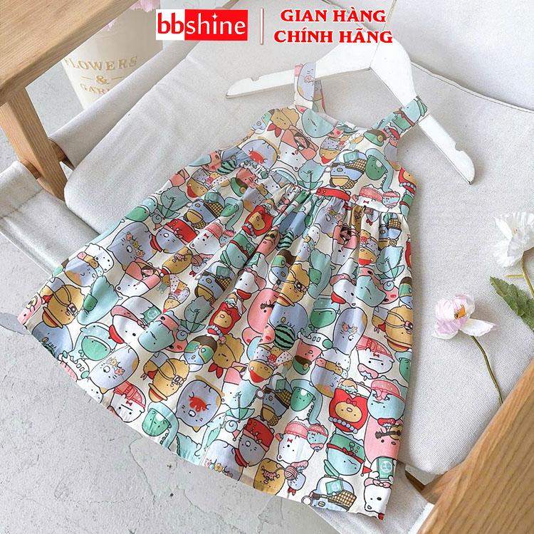 Váy bé gái 2 dây bản to cho bé 10-27kg phối nút gỗ cao cấp chất liệu thô mềm mát thấm hút tốt BBShine - D121