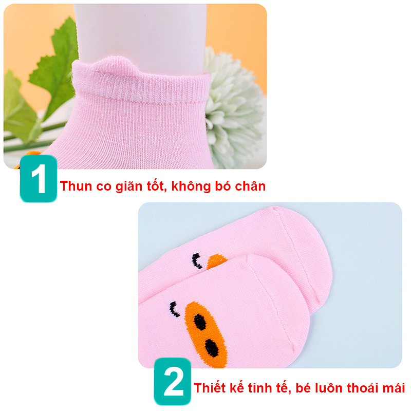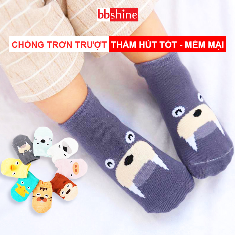 Tất hình thú cho bé, Tất cổ ngắn 0-36 tháng chống trượt ngộ nghĩnh đủ màu sắc cho bé trai và bé gái phù hợp cho bé mang đi trong nhà hoặc phối giày đi học, đi chơi