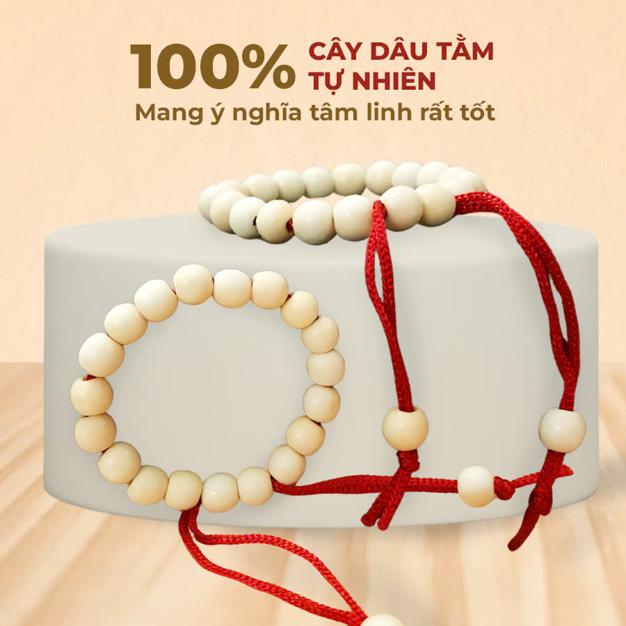Vòng dâu tằm là sản phẩm hoàn toàn tự nhiên, được chế tác 100% từ cây dâu tằm thật, một loại cây mang ý nghĩa tâm linh rất tốt mà từ xa xưa, ông cha ta đã sử dụng để trên đầu giường hay kết thành các vòng đeo tay cho trẻ sơ sinh và trẻ nhỏ để xua đuổi tà ma không cho chúng lại gần con cháu