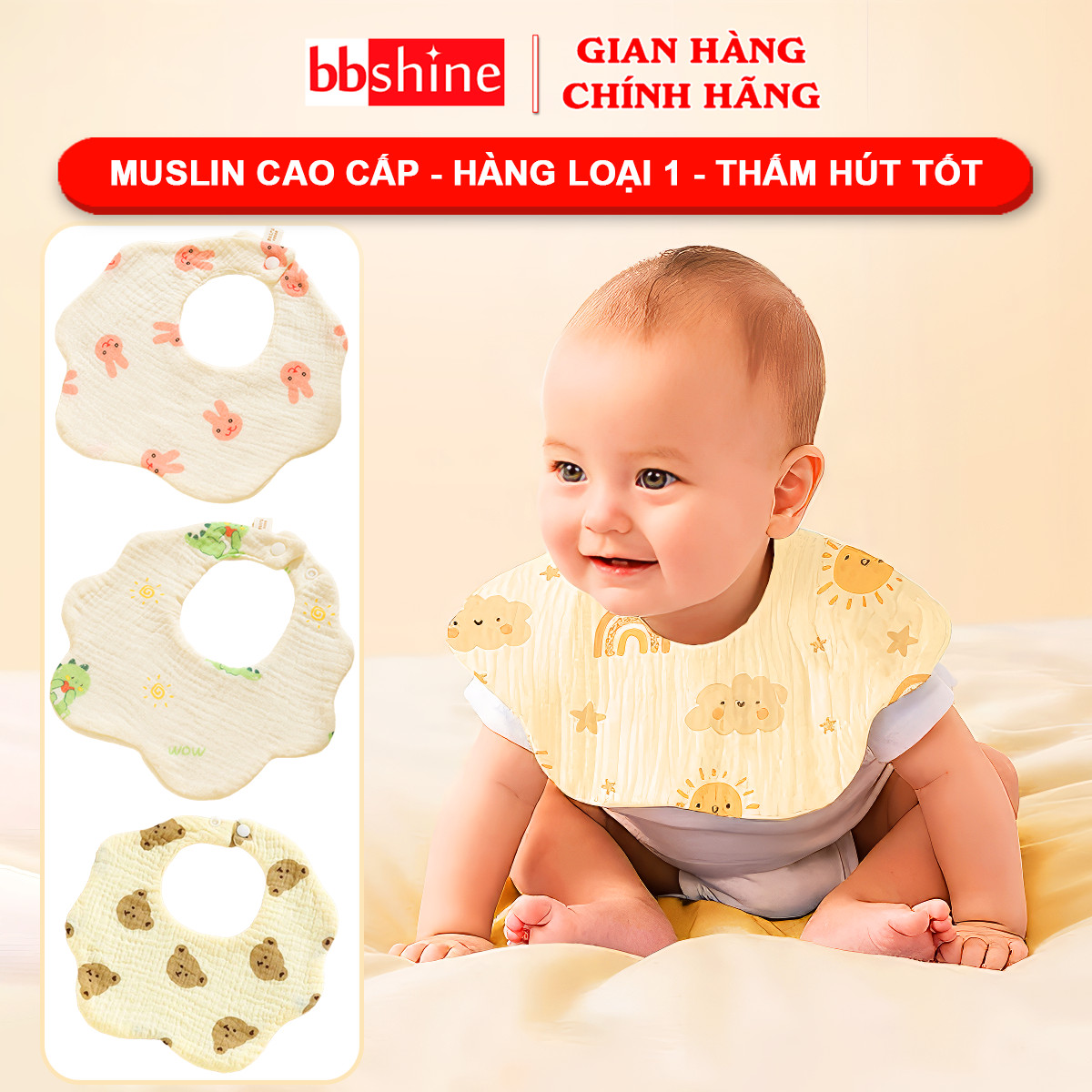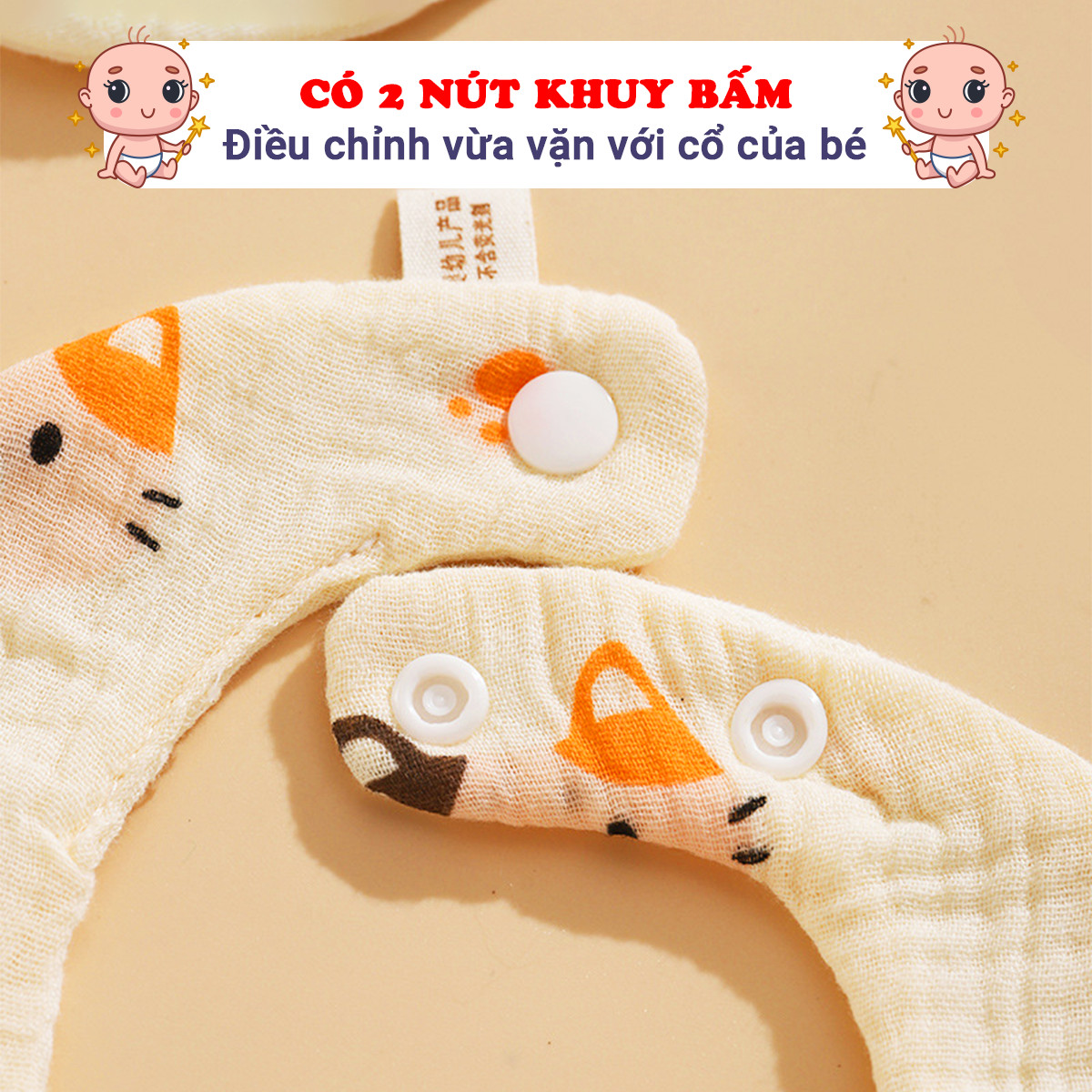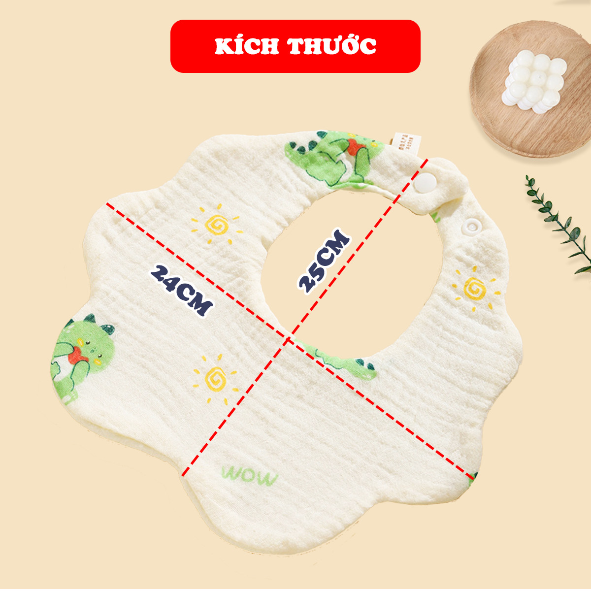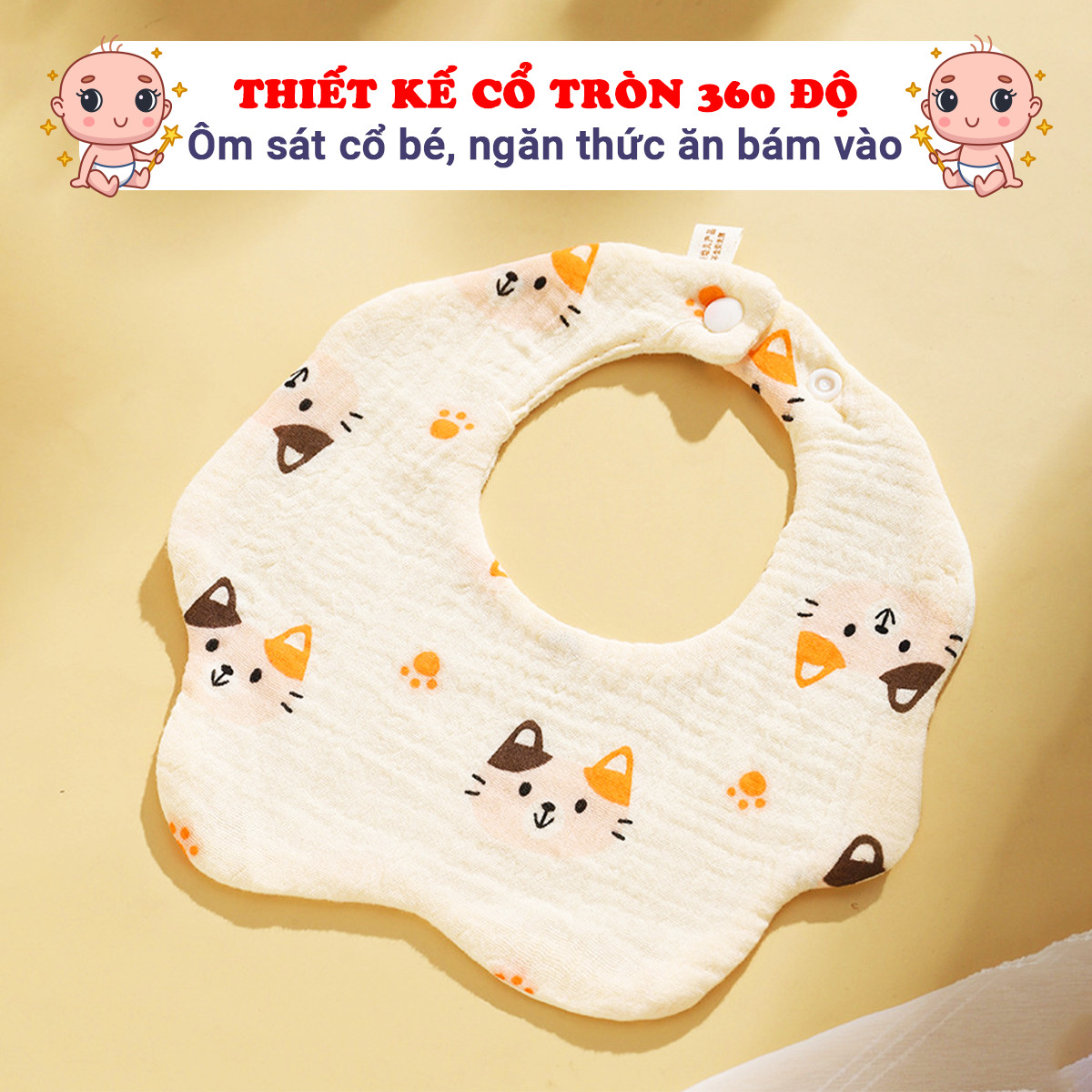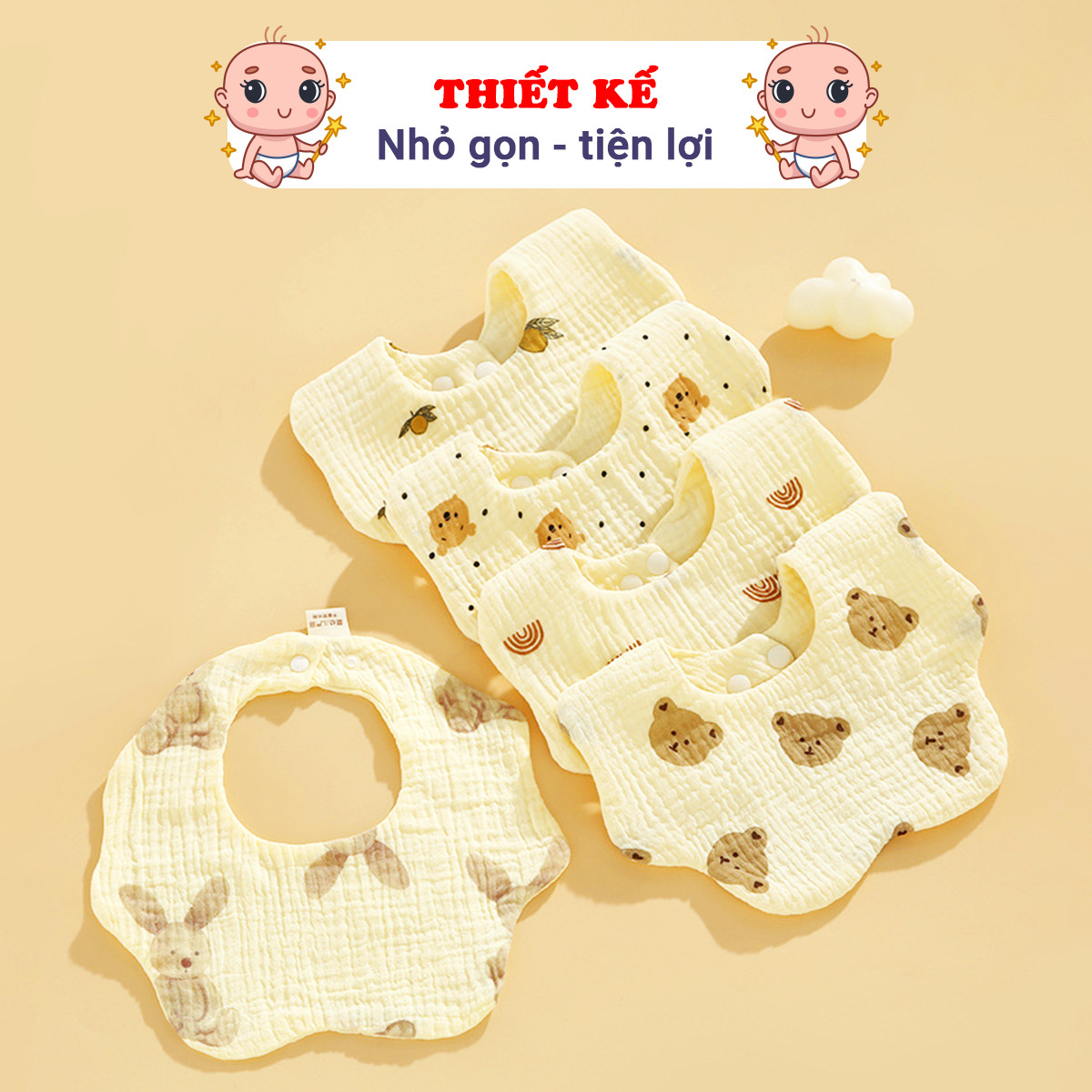 Yếm cho bé, Yếm tròn cho bé 0-3 tuổi chất muslin cao cấp cấu tạo 6 lớp dày dặn nhiều họa tiết đáng yêu