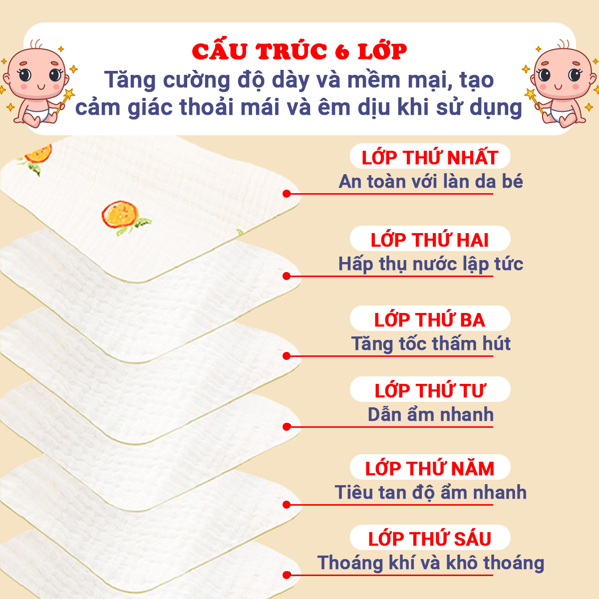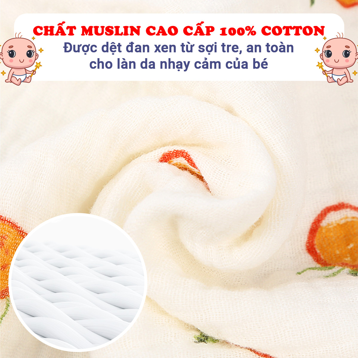 - Được làm từ chất muslin cao cấp 100% cotton, thấm hút tốt, an toàn với làn da bé